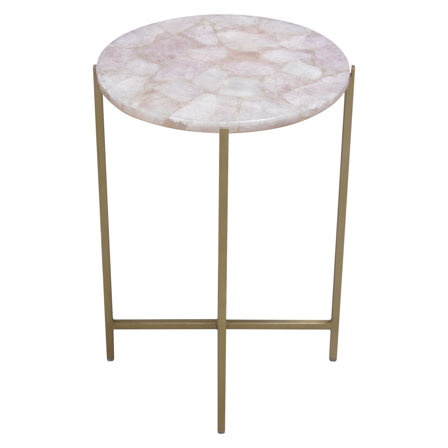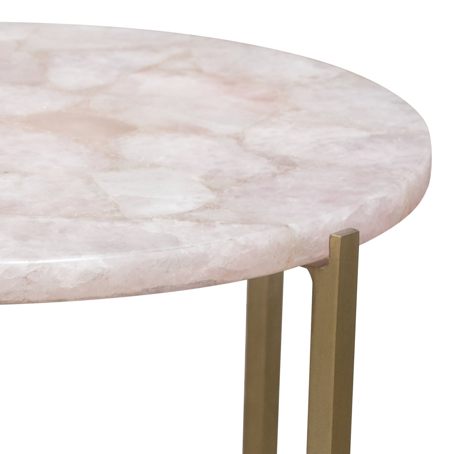- The Beautifully Organic Rose Quartz Top on the timelessly simplistic Brass Base creates a striking accent table that adds a dramatic flair to any room in your home.