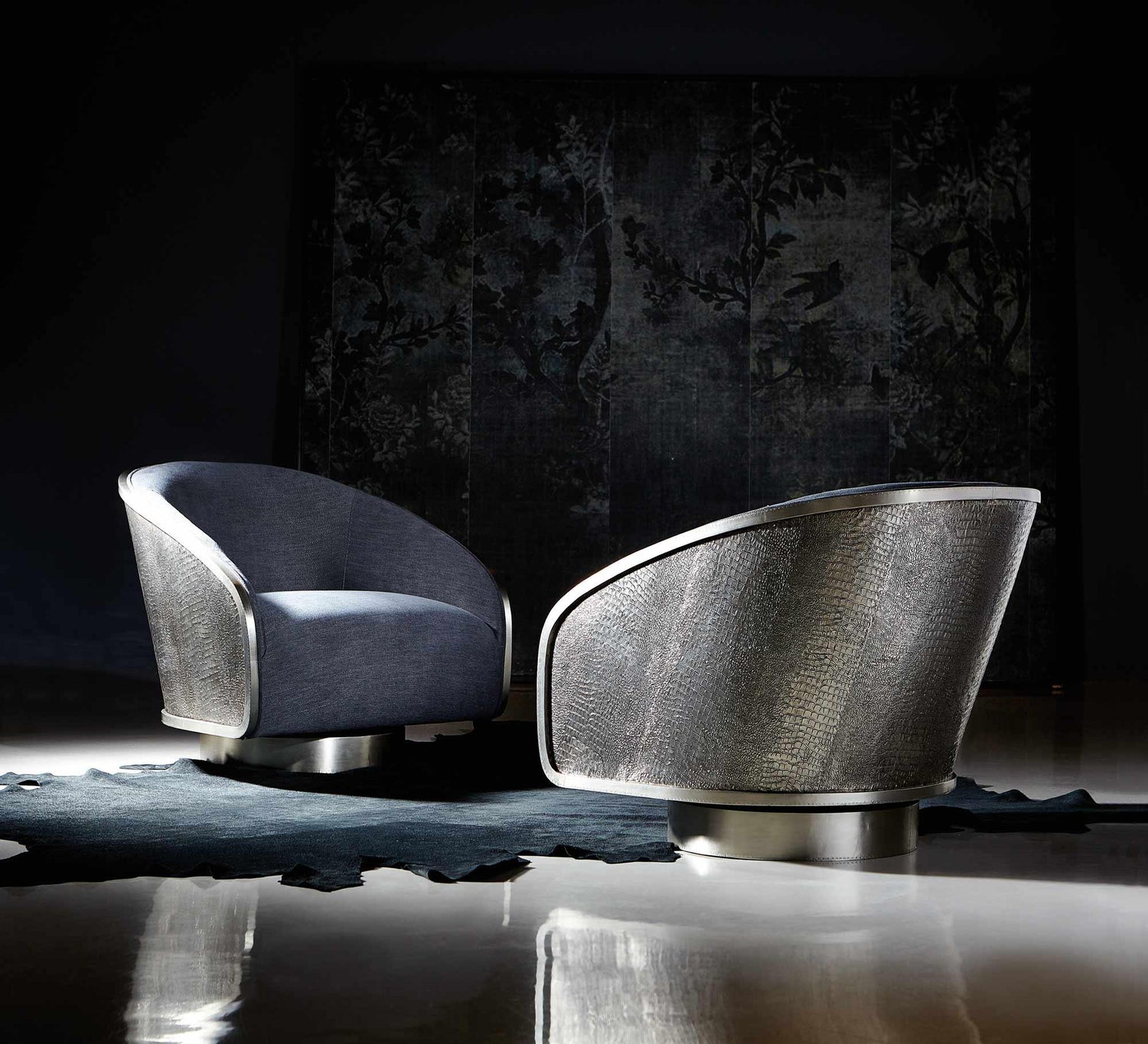 - Item Name: Miles German Silver/Grey Fabric Swivel Chair