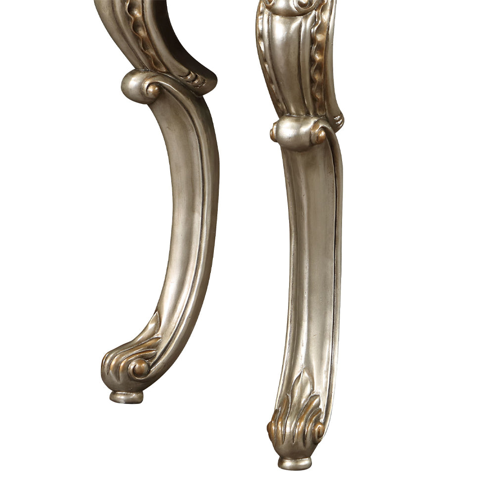 Oozing with elegance and refinement, the Miliani sofa table makes for an alluring living space. With beautiful scroll legs and shell carvings throughout the trim for a traditional design touch. The bronze finish elevates this piece and will make for a focal point in any room and giving it a modern edge. The natural marble top is stunning and gives the piece some richness and it is a durable material that will last for years to come. This is a transitional piece that can be placed in your living room or entryway the ideal piece of furniture for displaying decorative items.