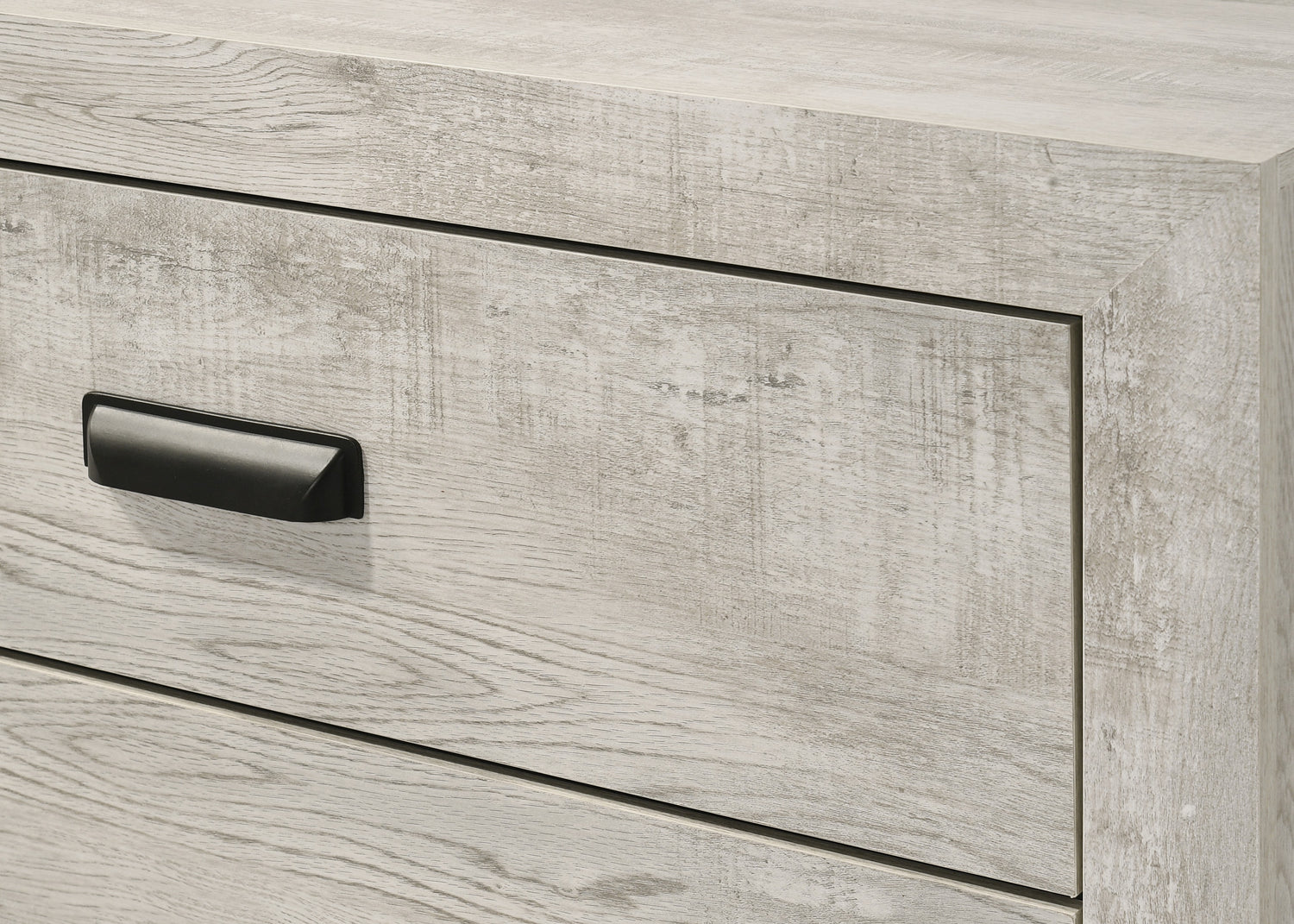 This bedroom set offers a minimalist design with subtle rustic influences, creating a serene and uncluttered atmosphere. The straightforward lines of the panel bed frame, combined with the whitewashed wood finish, bring a sense of calm and natural balance to the space. Designed for everyday functionality, this collection supports an organized and effortless bedroom environment.
