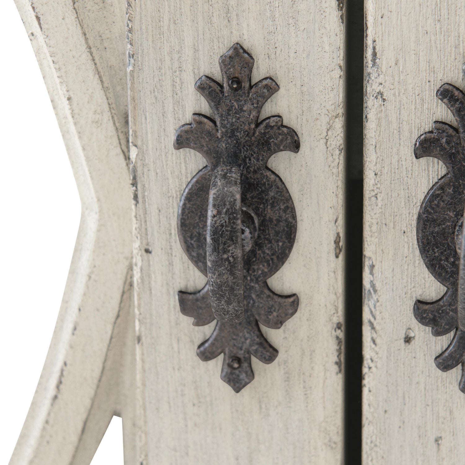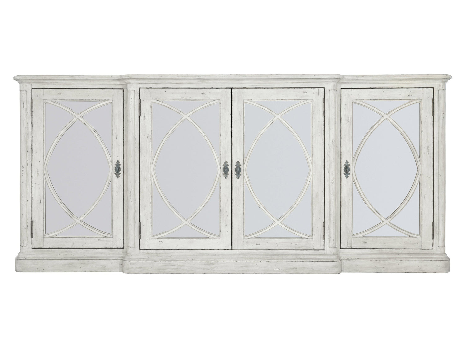 - Four doors with cast grille over inset antiqued mirrored glass panel