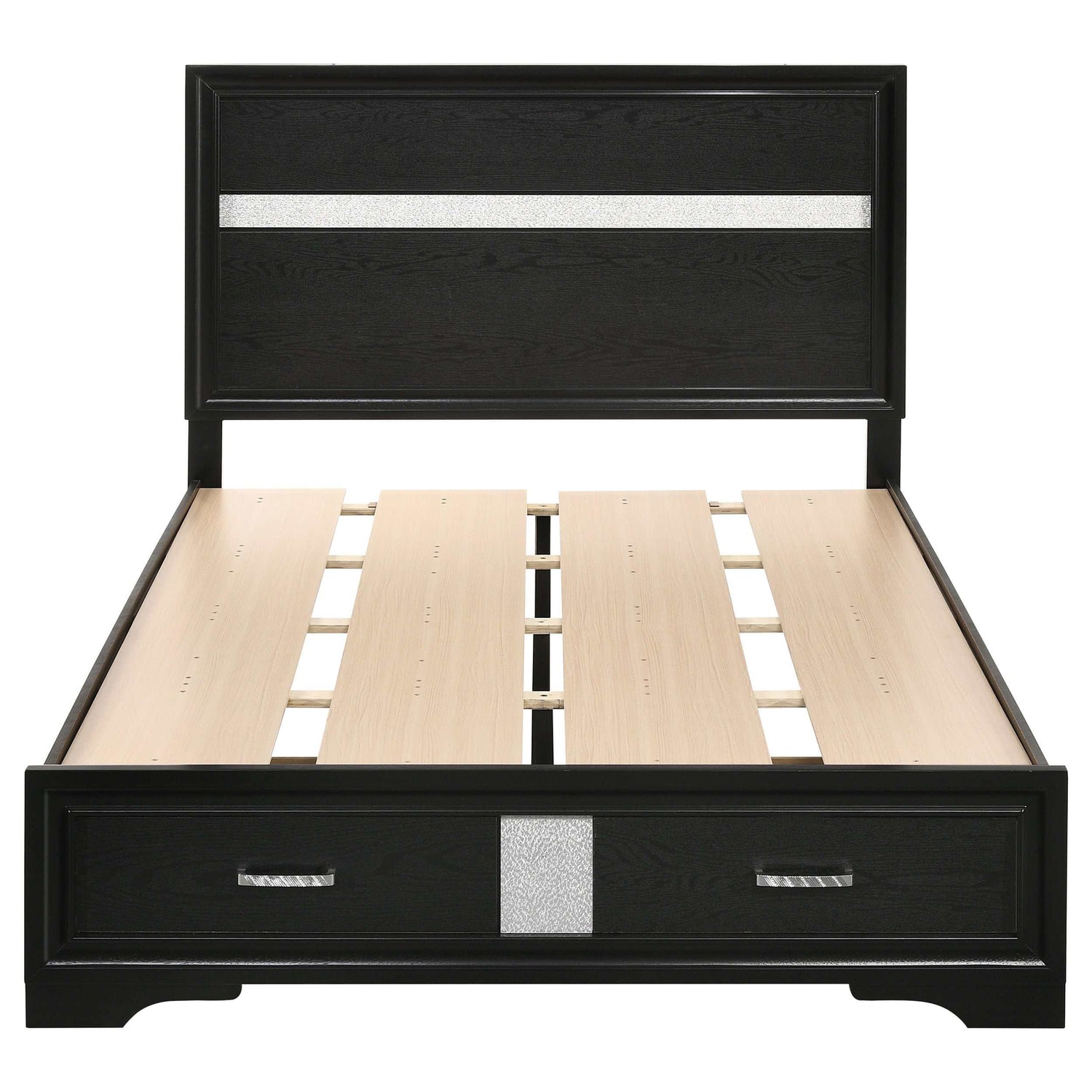 Create a stunning bedroom ensemble that's fit for modern royalty. Each gorgeous piece in this four-piece set flaunts silvery, sparkling accents for a truly glamorous look. The bed features a solid, straight silhouette and two storage drawers built into the base. The case pieces bring you even more storage space to keep your room looking neat and tidy. Available in a variety of colors and sizes, there's an option to bring any bedroom to life.