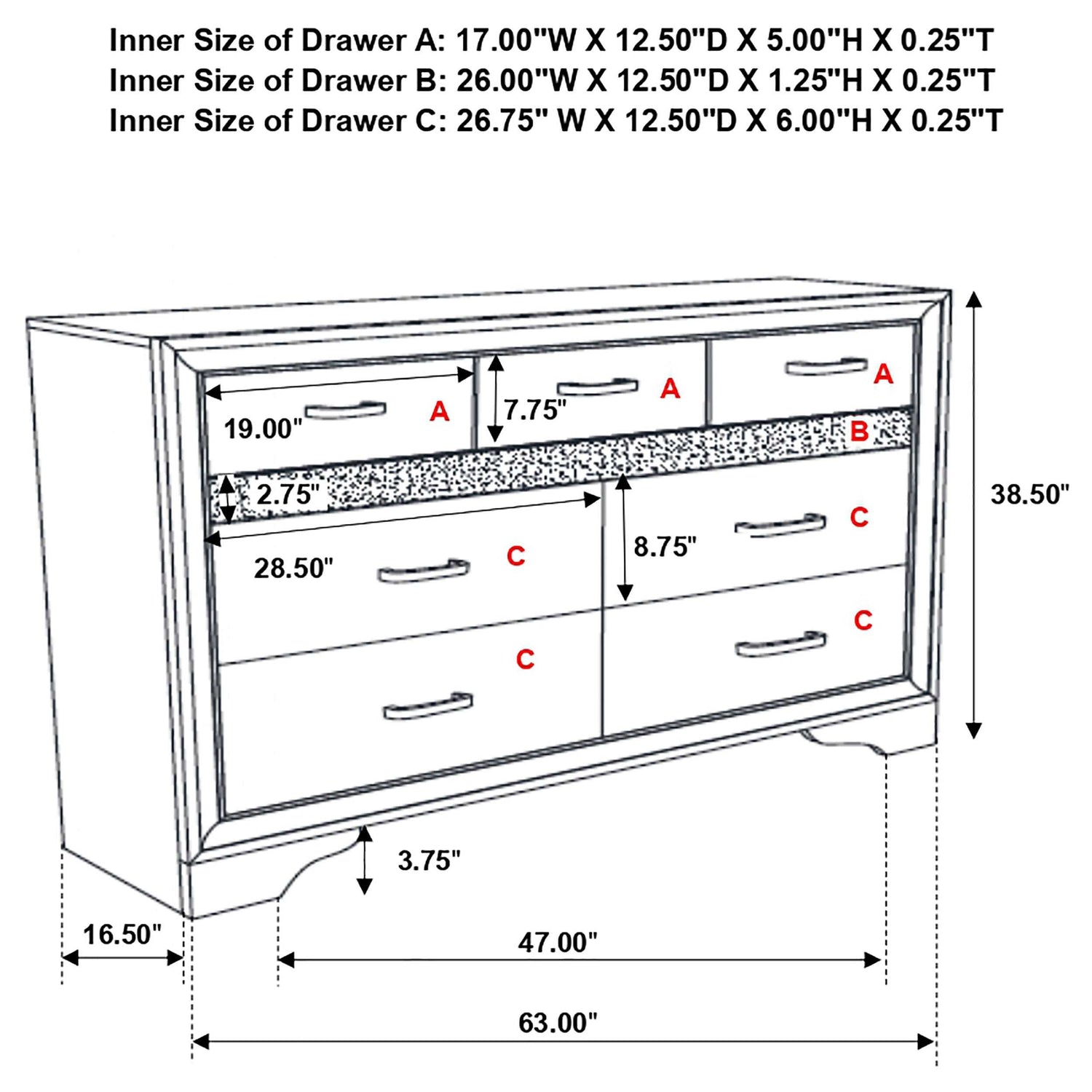 Includes: One (1) queen bed, one (1) Nightstand, one (1) Dresser, one (1) Dresser Mirror, and one (1) chest