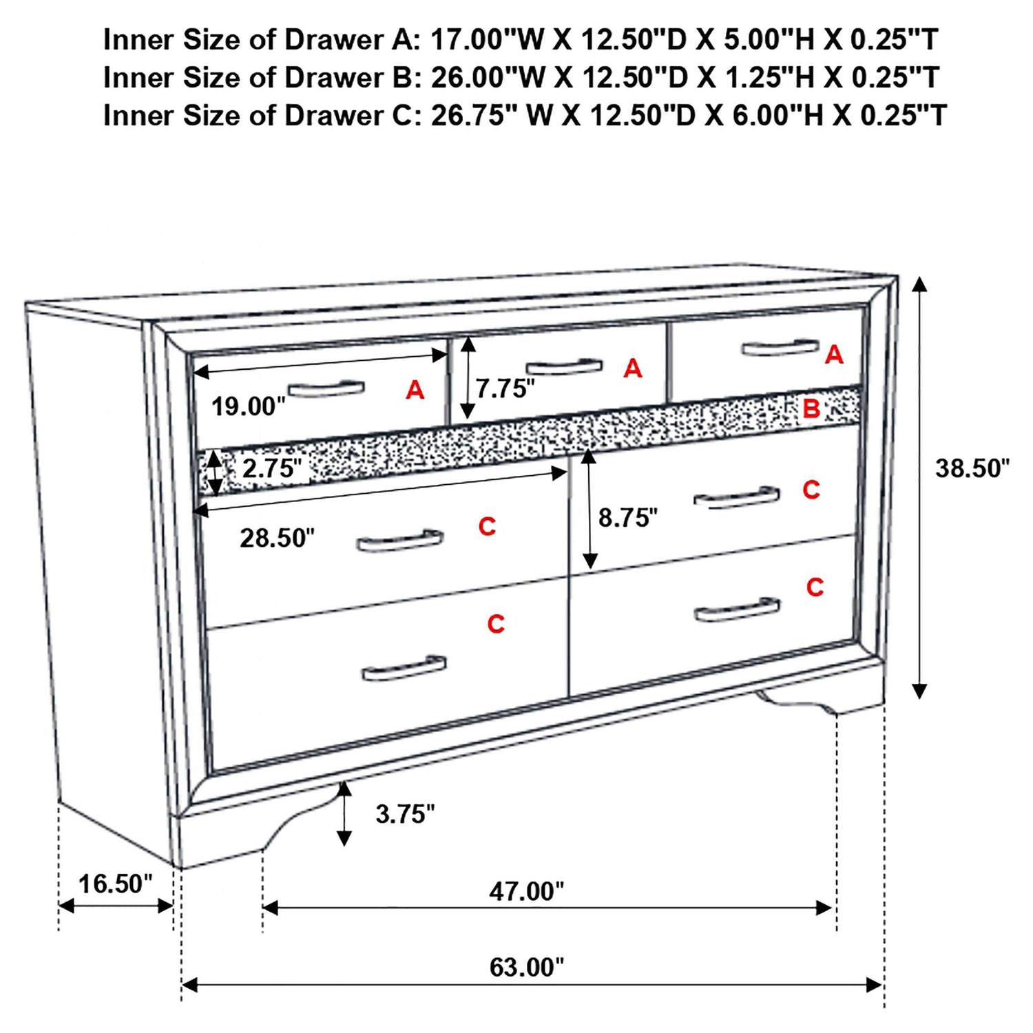 Includes: One (1) california king bed, one (1) Nightstand, one (1) Dresser, and one (1) Dresser Mirror