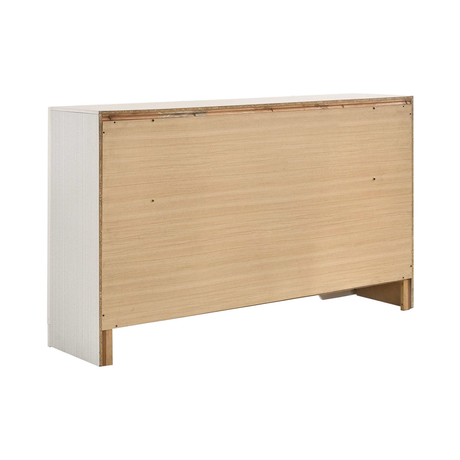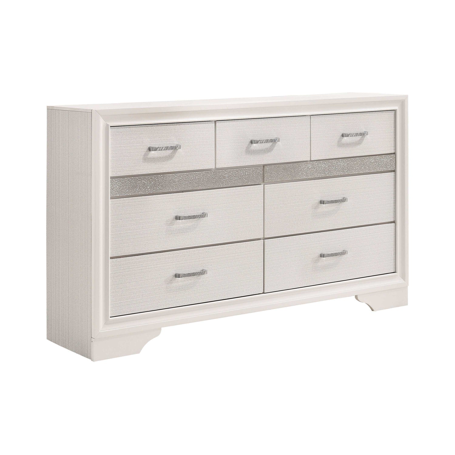 Infuse your space with sophisticated grace. The chic design of this beautiful dresser lends a touch of elegance to any bedroom. Felt-lined drawers keep delicate belongings safe and secure. A hidden jewelry drawer offers a discreet place to store your valuables. Complete with a glittery panel across the front, this piece exudes sparkling opulence.