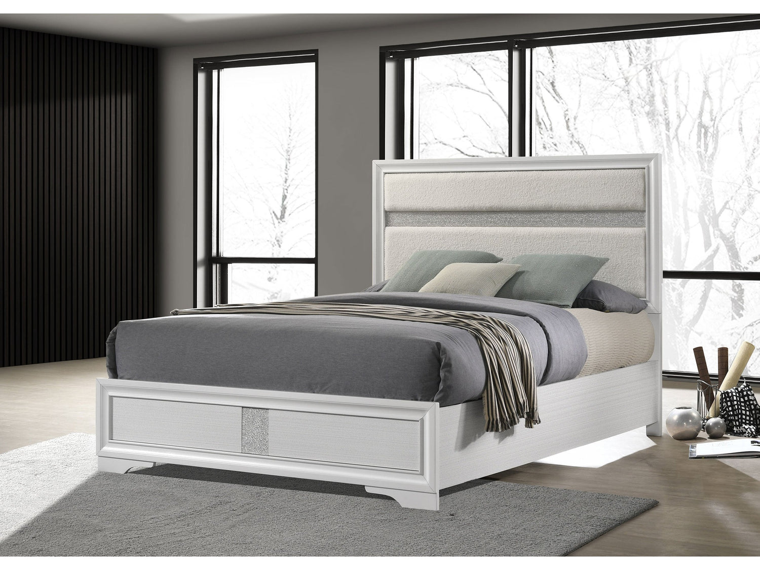 - Upholstered headboard features a horizontal stripe with a glittery, sparkling design