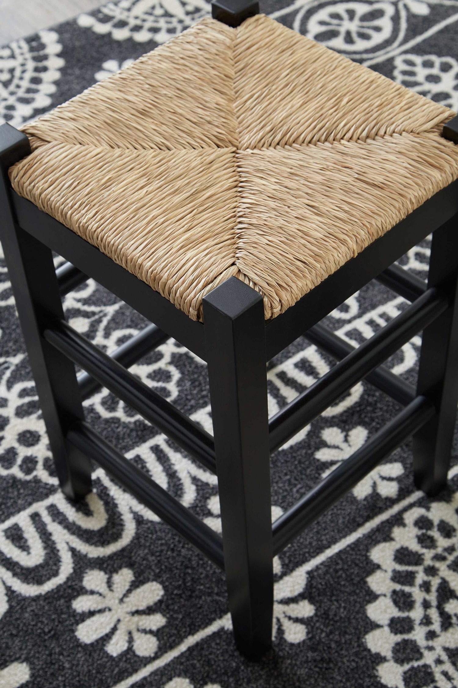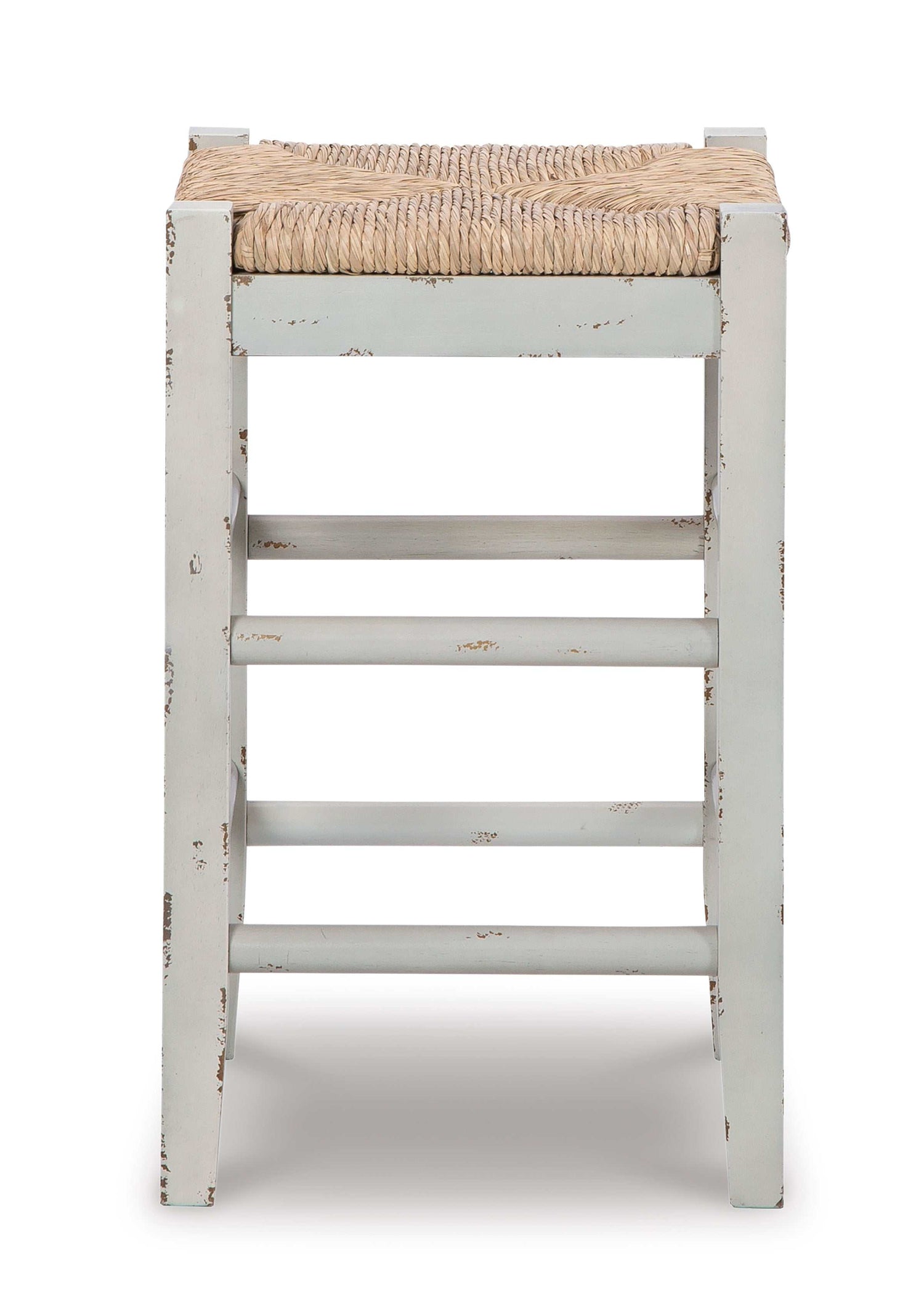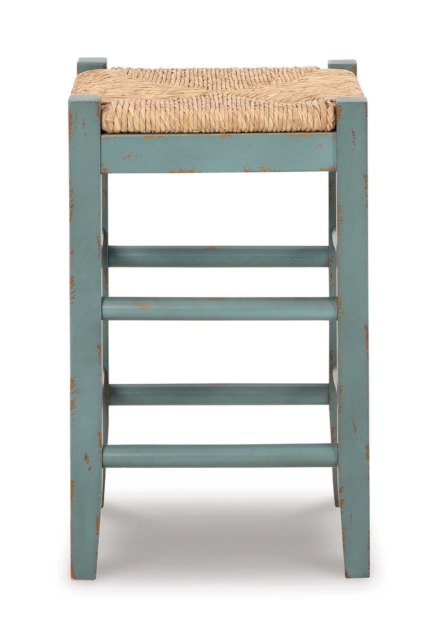 Bring the vintage casual vibe you love to the kitchen with this counter-height bar stool. A stylish seating solution in a white, teal rubbed-through, or black chic finish, this charming stool completes your dining space with ease. The woven seagrass seat and wood stretchers create an effortlessly beautiful look with endless possibilities.
