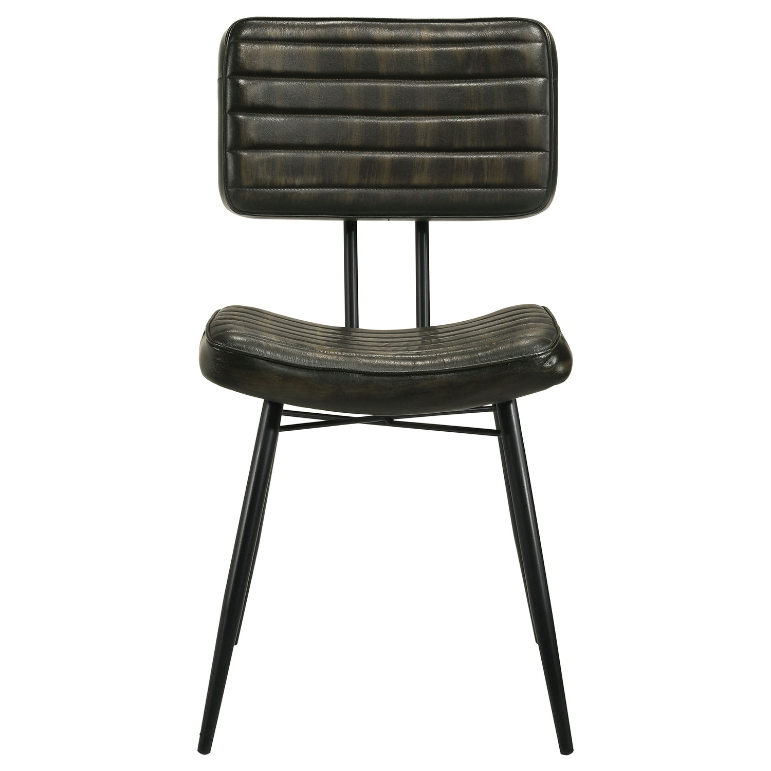 - Side chairs feature iconic metal framing and channeled tufting upholstery