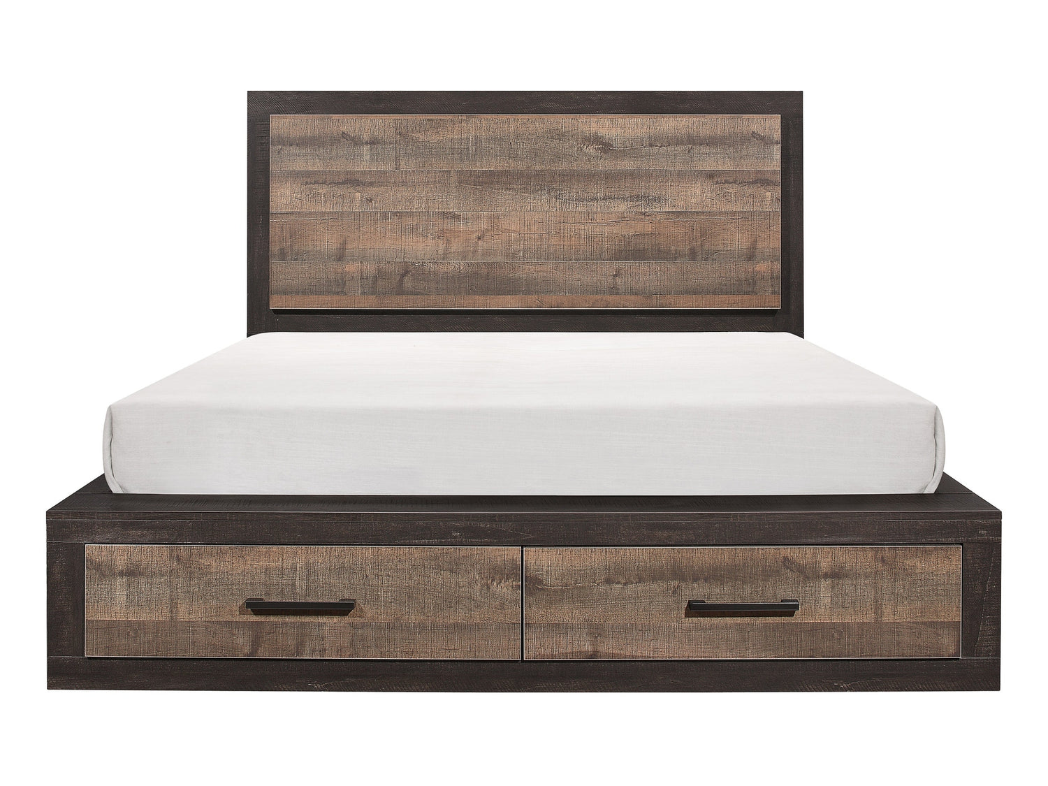 - Item Name: Miter Rustic Mahogany And Dark Ebony Eastern King Platform Bed With Footboard Storage