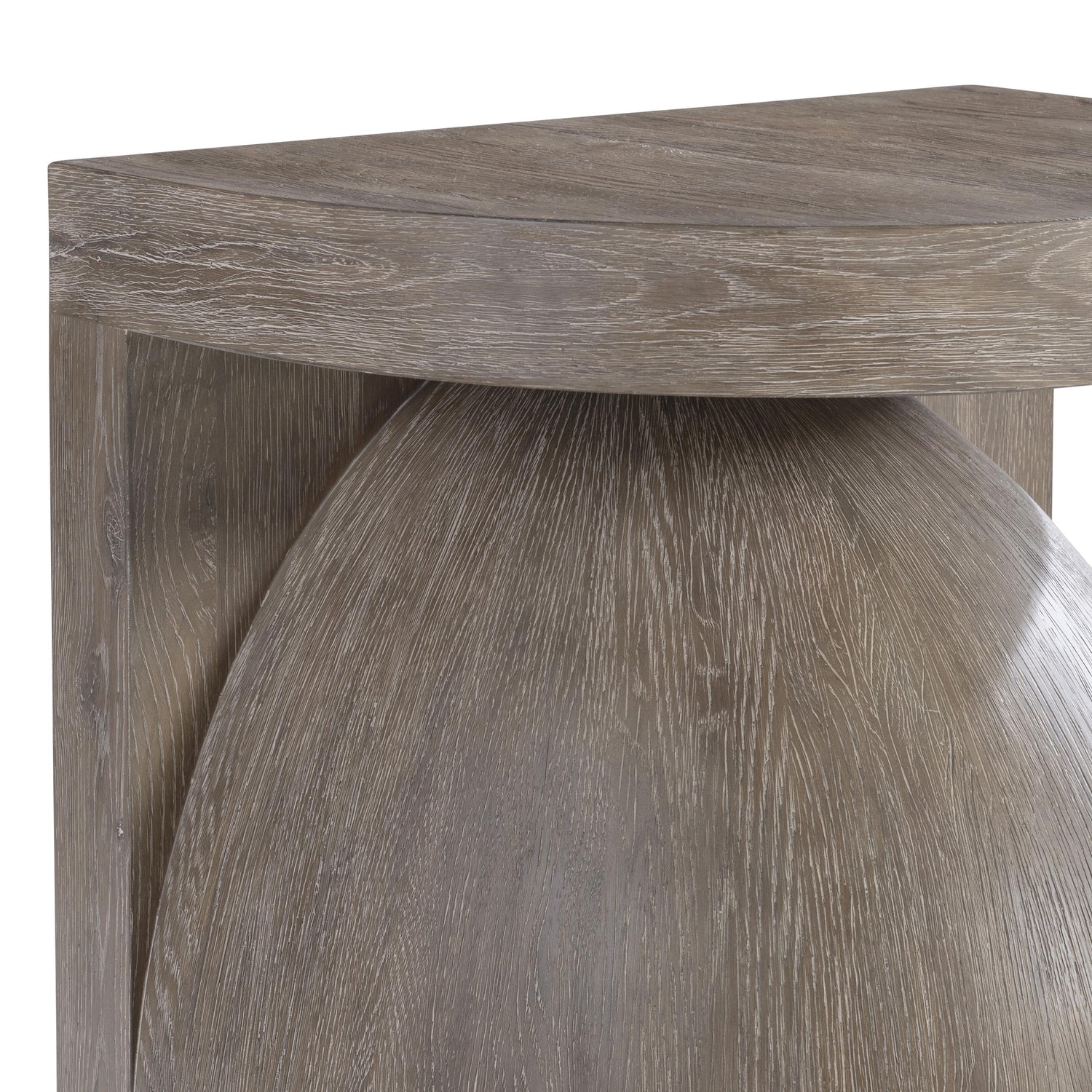 - Cast resin with woodgrain texture on rounded bulb base supporting oak top and back, all in Aurum finish