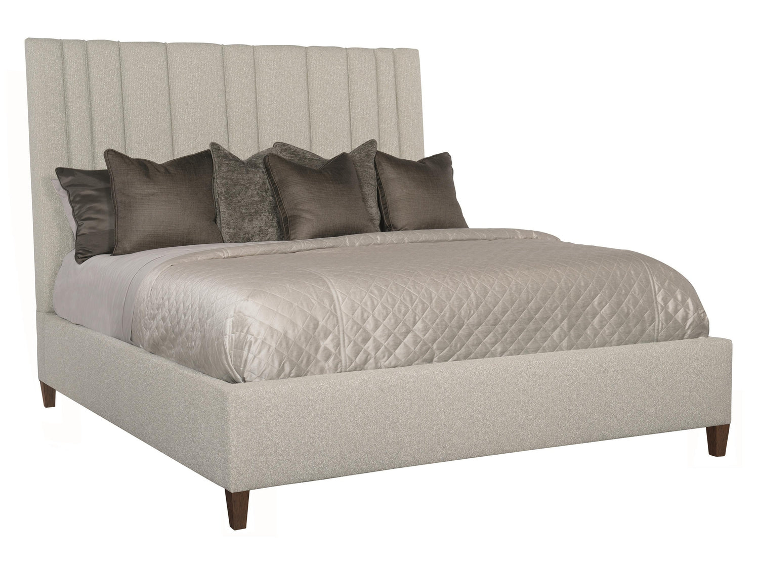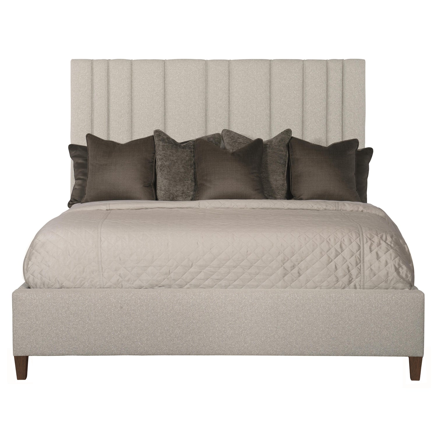 - Tapered headboard with upholstered channels in random widths, and welt between channels