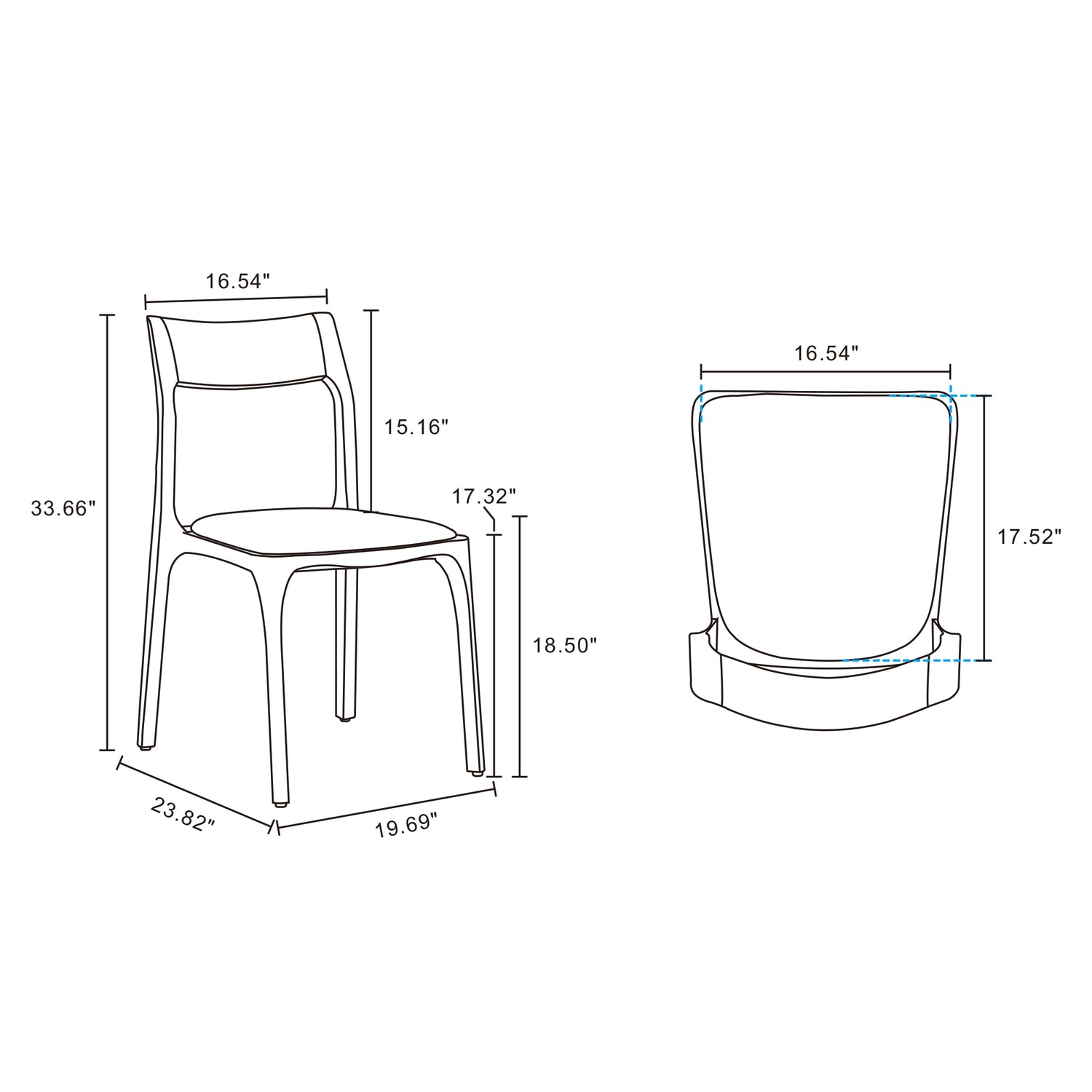 - Dining Chair- Set of 2 Dimensions Measure: 17.72 in. Length, 33.66 in. Height, 23.82 in. Depth.