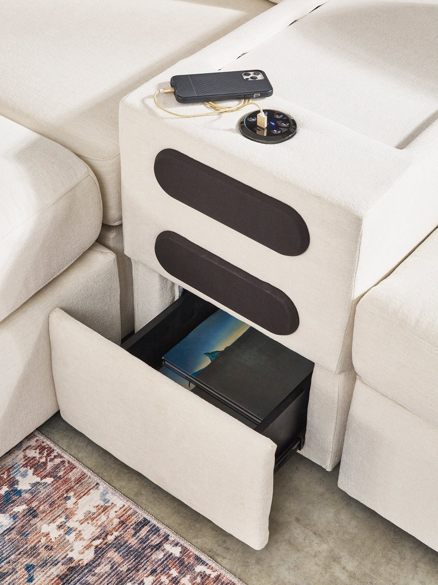 Looking cool and contemporary is great. But when it comes down to it, you’re all about low-maintenance lounging. Cleaning spills is a breeze with the performance fabric on these sectional units and an audio system. Its customizable modular design caters to your ever-changing needs, whether you need extra seating when guests drop by or you're setting up for family movie night. Built-in speakers with wireless connectivity turn your living room into an entertainment hub. So grab some popcorn, settle in, and enjoy the show.