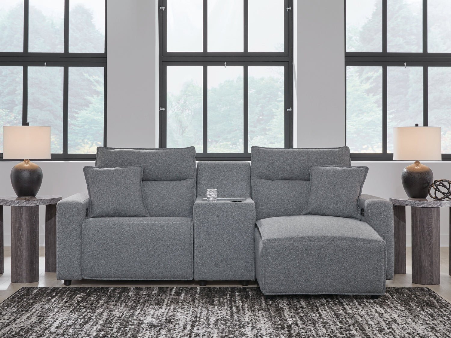 - Includes 3 modular pieces: left-arm facing power recliner, console with storage and right-arm facing power reclining back chaise