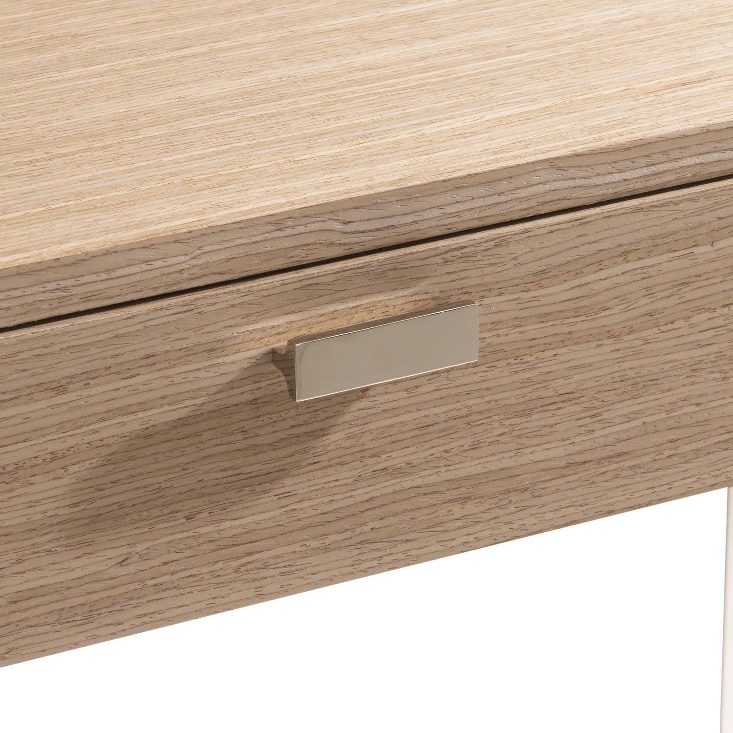 - Computer/writing desk crafted from metal in Polished Stainless Steel finish and engineered wood veneer in Sahara finish