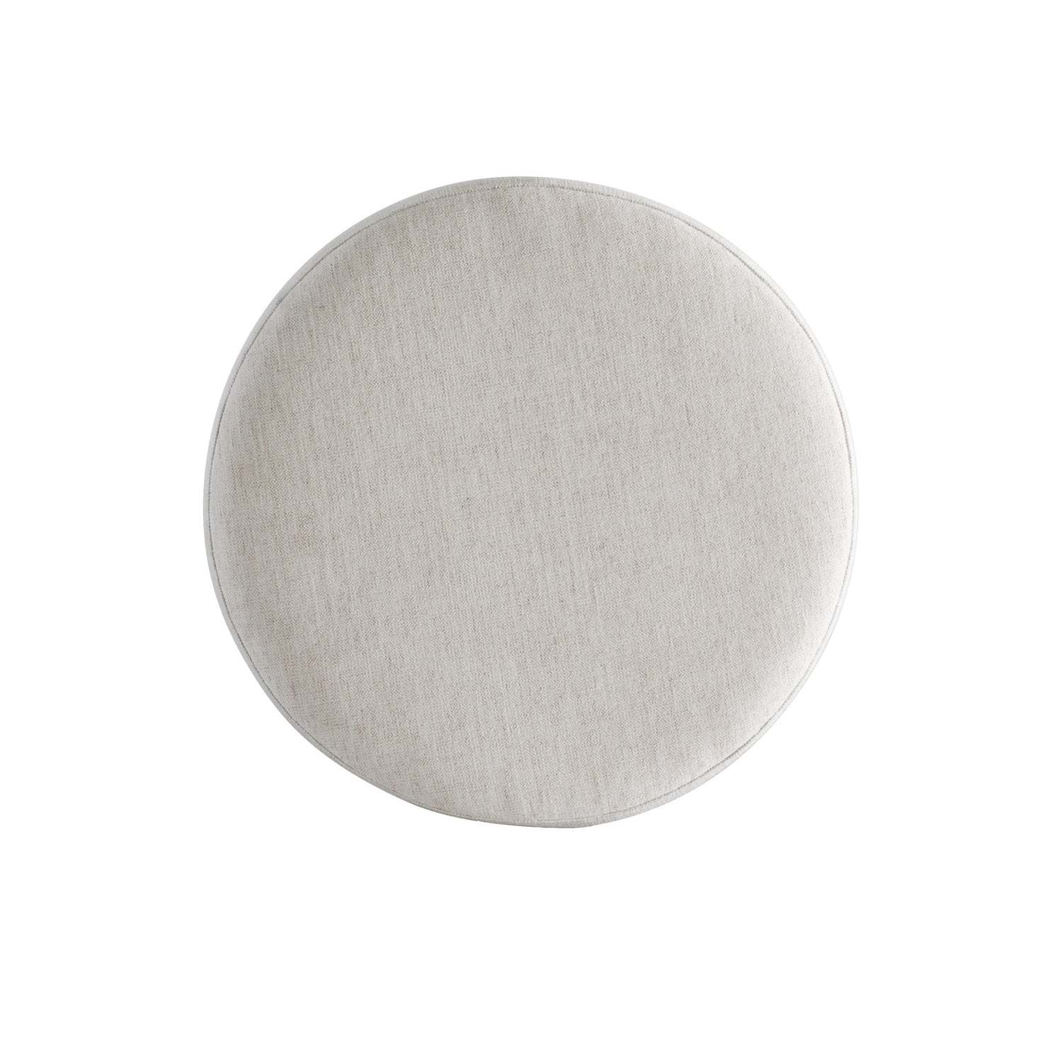- Round, upholstered bench with metal base in Polished Stainless Steel finish