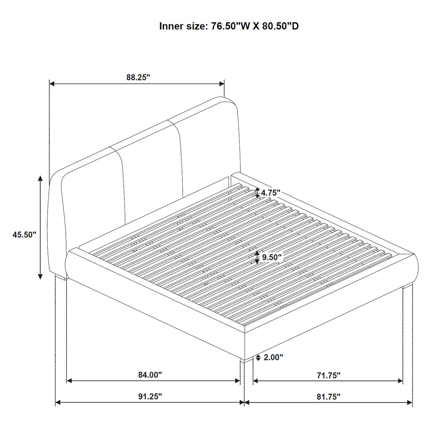 Overall Dimensions (Inches):Eastern King Bed: W: 88.75 x D: 95.25 x H: 45.5 Weight (lbs): 188.54