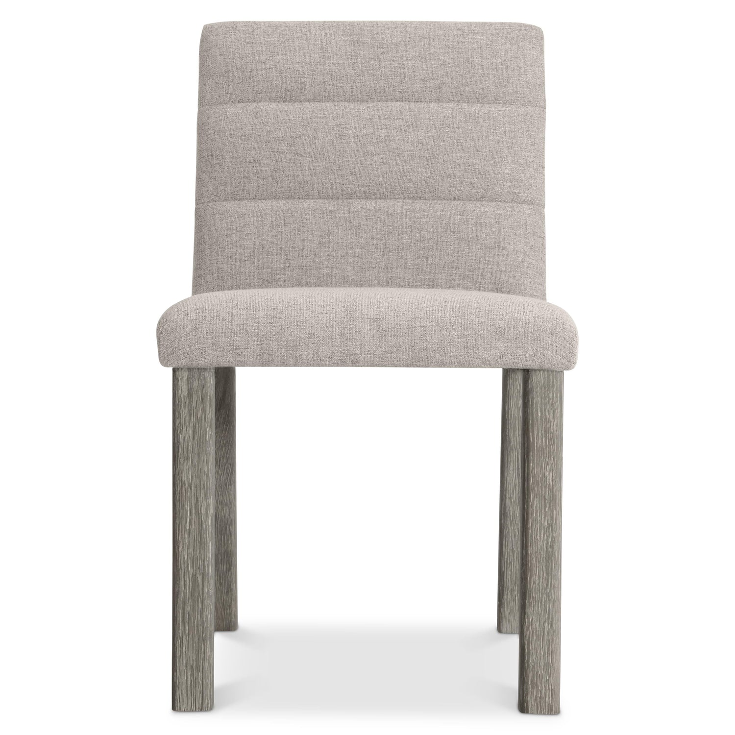 - Upholstered horizontal channels on inside back and seat, supported by wirebrushed oak legs in Puma finish