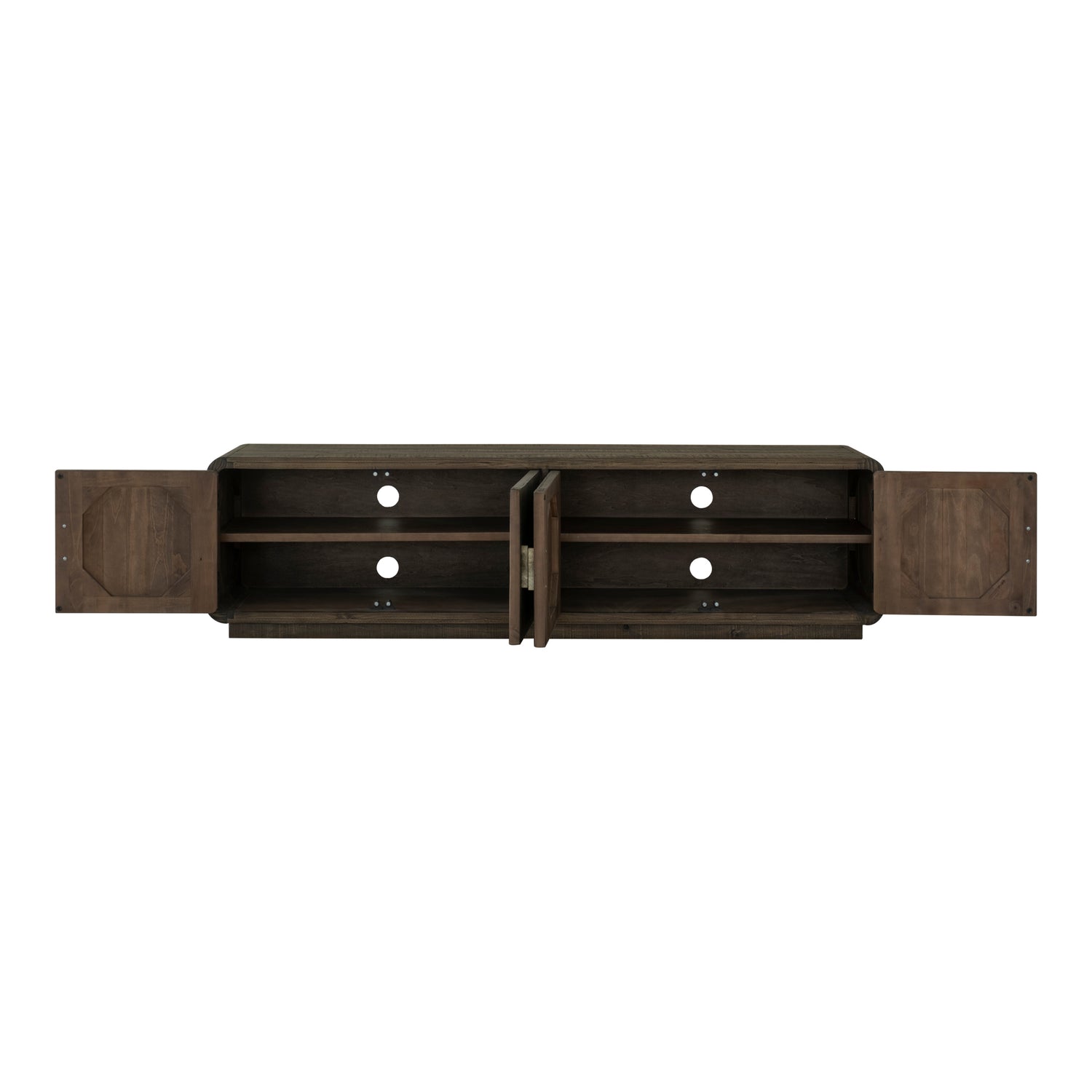 - Solid pinewood with a matte, driftwood finish- 4 cabinet doors with magnetic closures