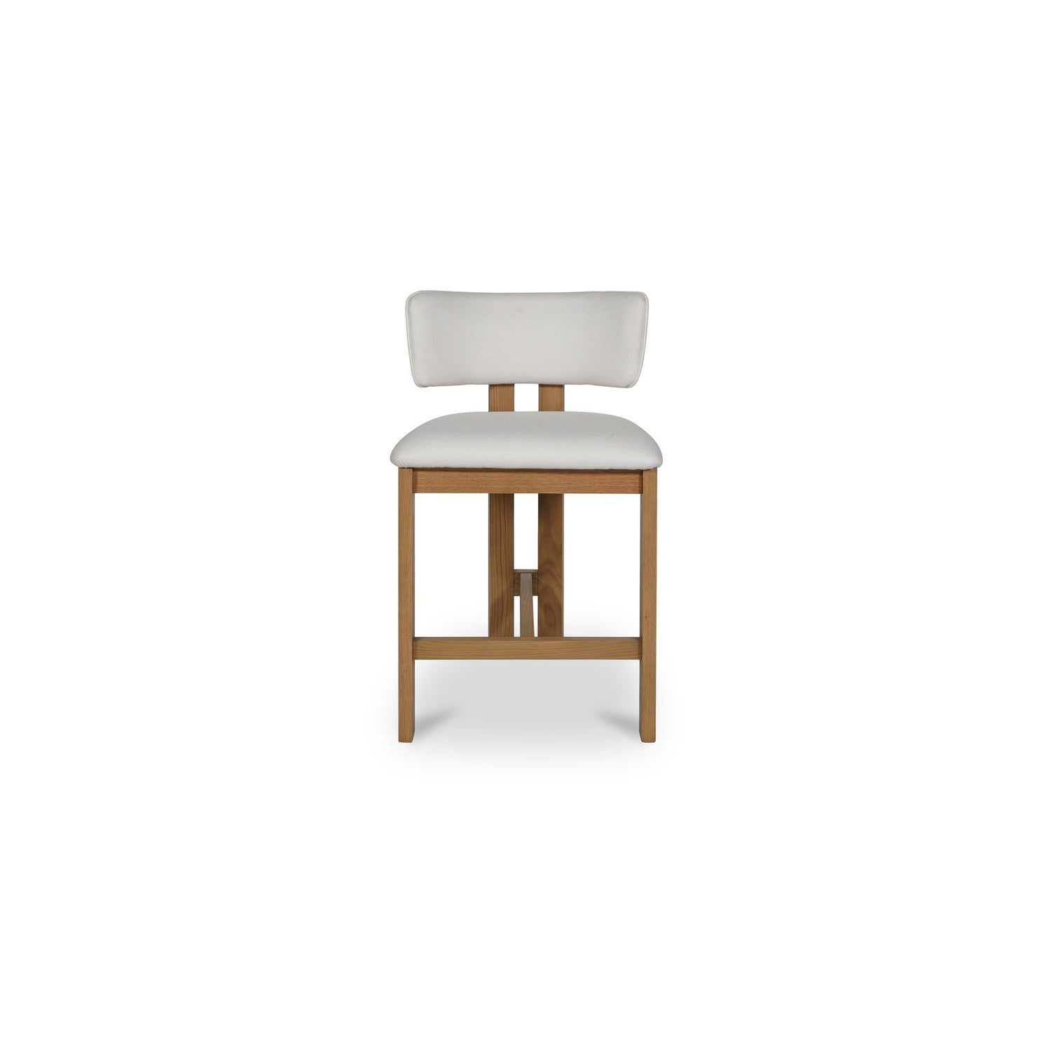 The Morel Cream Counter Stool is a counter stool constructed from solid oak and performance fabric that provides a durable seating option. This design offers a classic yet current aesthetic, pairing an oak frame with a curved backrest and double-beamed structure for both strength and style. Upholstered in cream performance fabric, it delivers refined design built to handle everyday use. With its armless profile and sculptural lines, Morel balances its structure with a modern edge, crafted to look sharp and sit comfortably.