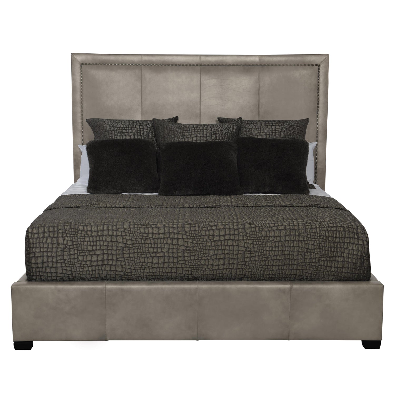 Morgan Beige/Tan Leather Queen Panel Bed – Tall Headboard