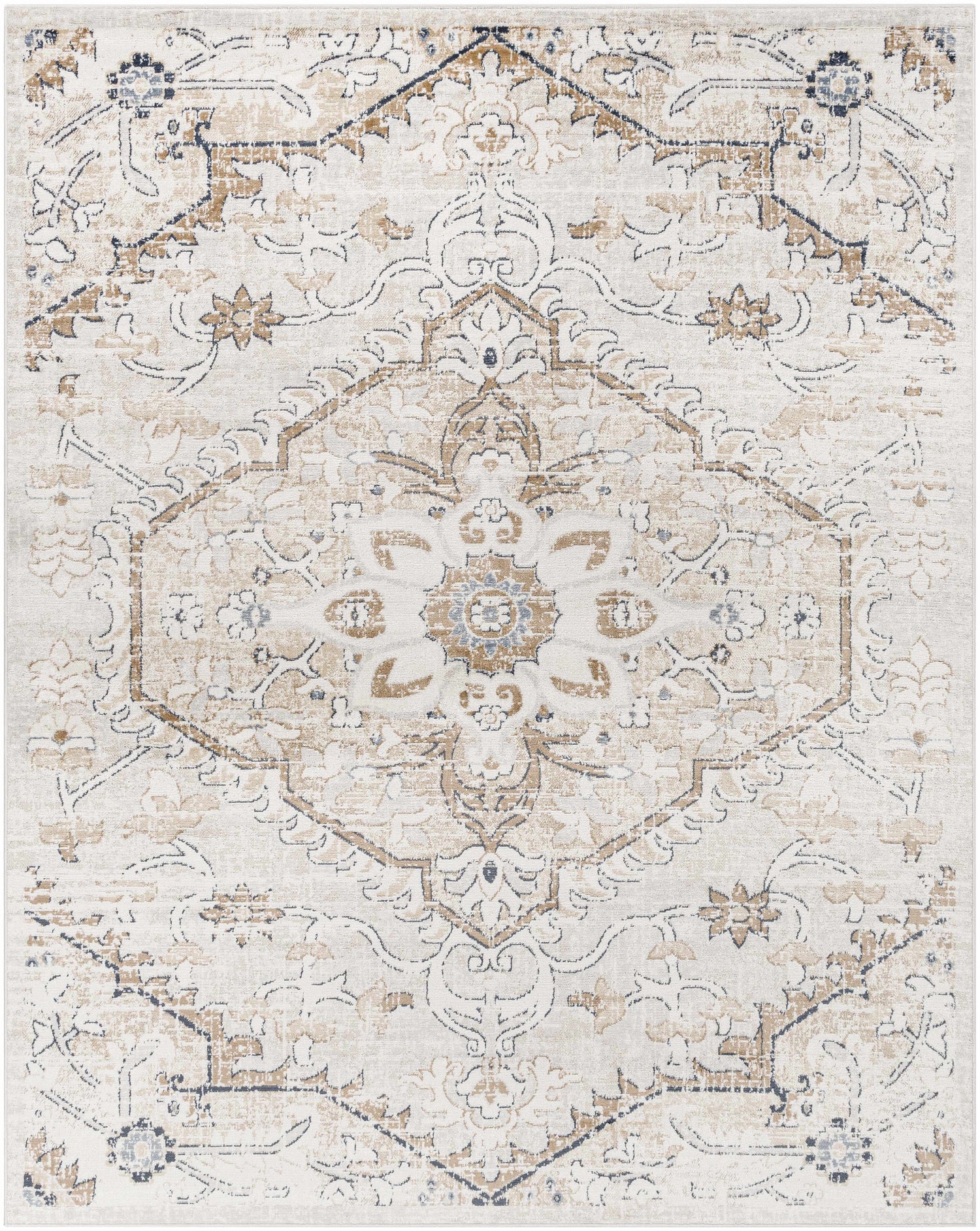 About: Add elegance to your home with Mudgee traditional rug. Featuring charcoal, cream, tan, light slate, and peach tones, this machine-woven rug from Turkey is crafted from 100% polypropylene with a medium pile, offering both style and comfort. |