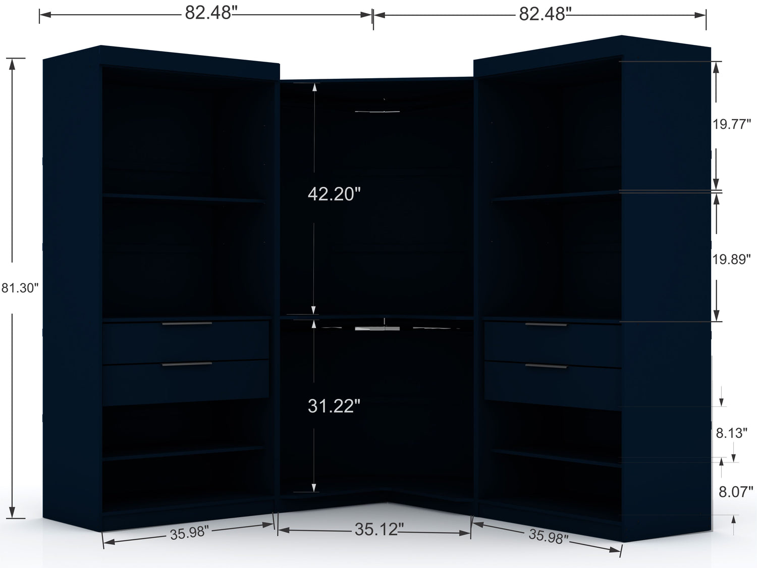 - Item Name: Mulberry Open 3 Sectional Corner Closet in Tatiana Midnight Blue (set of 3)