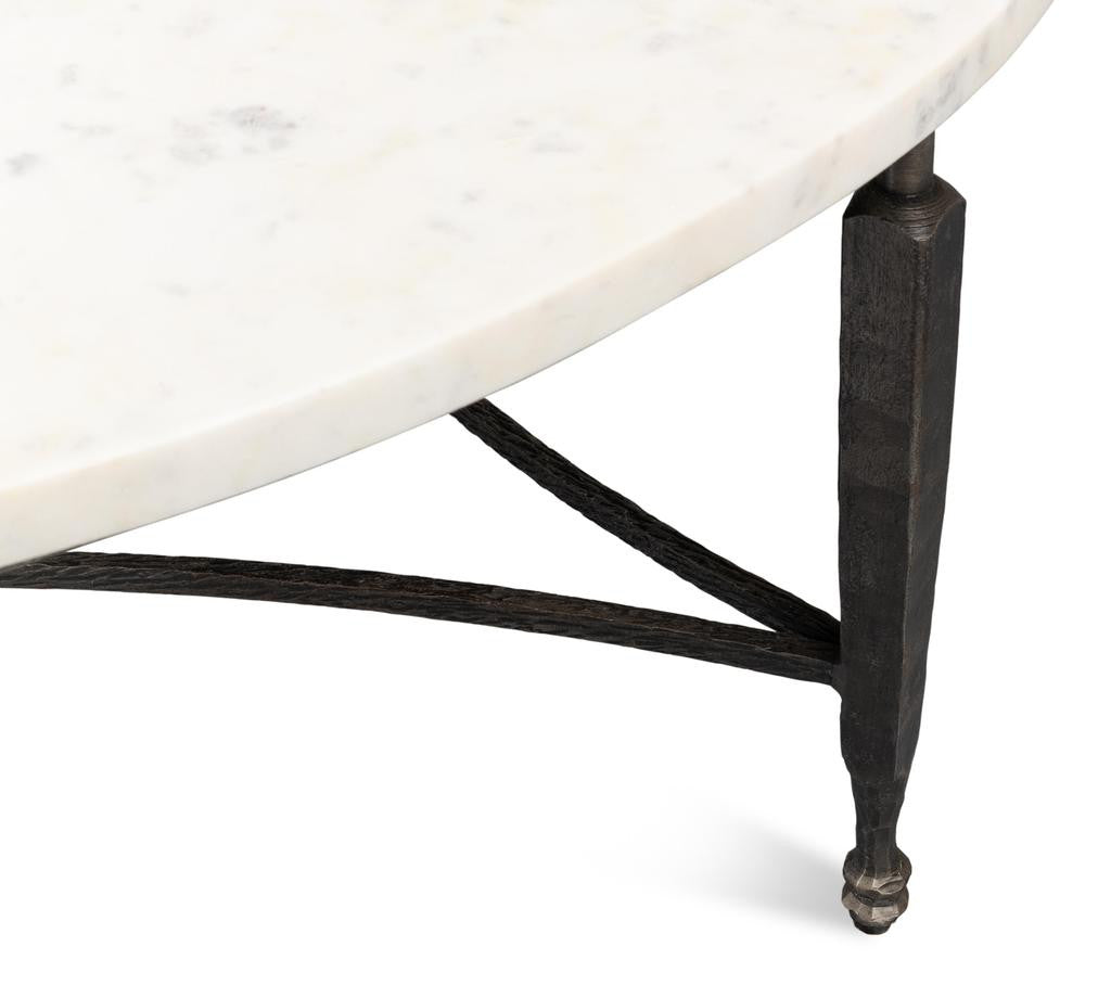 Mykos White Marble/Black Round Coffee Table