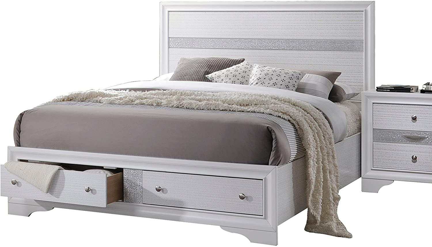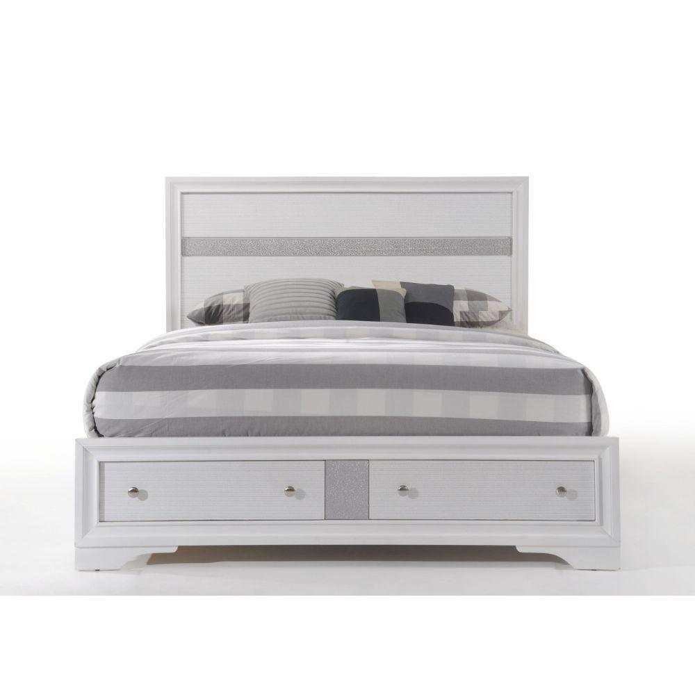 Naima White Eastern King Bed w/ Storage FB