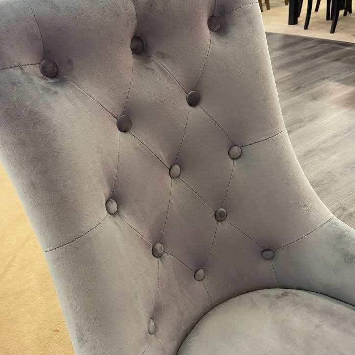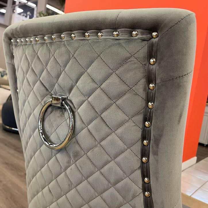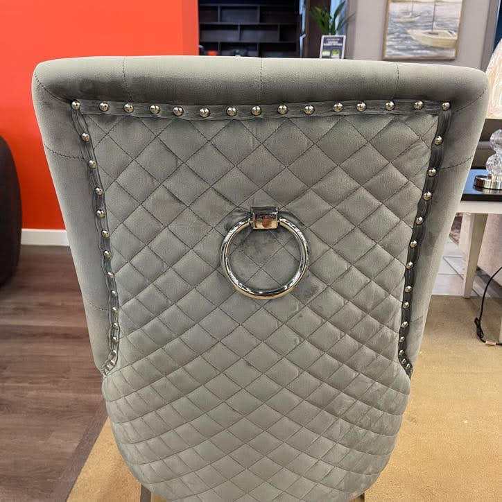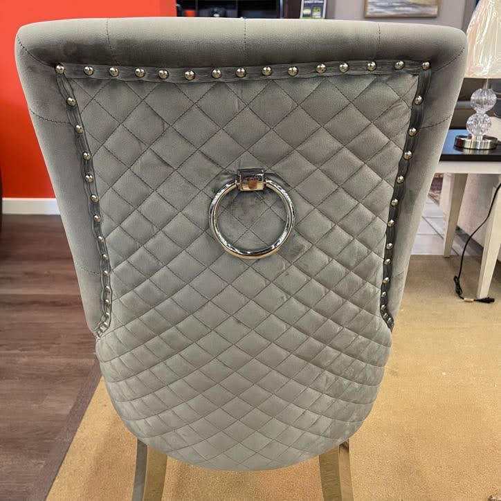 - Chair Finish: Gray Fabric & Mirrored Silver Finish