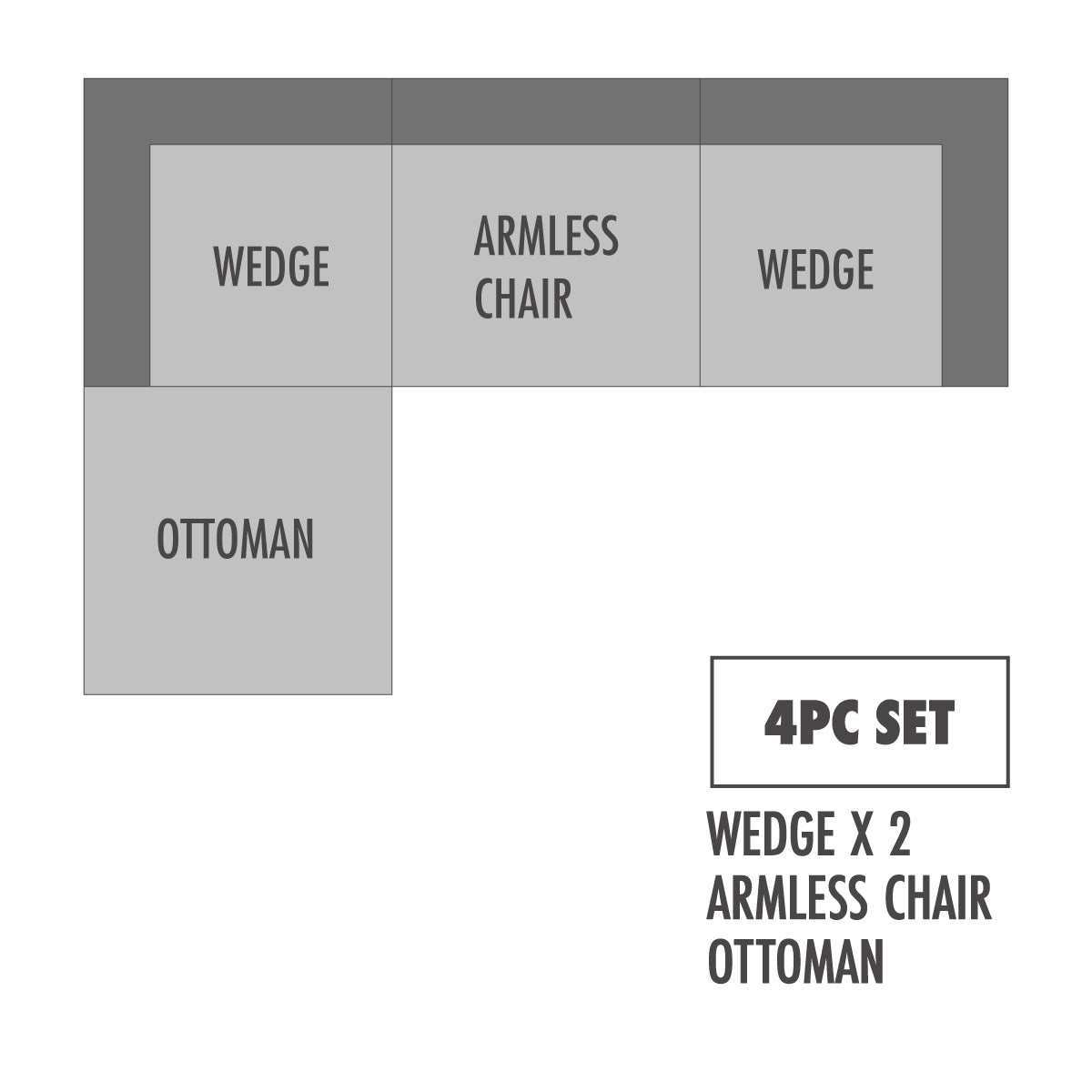 Complete your living room with the unique design and sink-in comfort of the Naveen modular collection. Add both contemporary and modern taste with this beautiful group wrapped in a relaxing hue fabric. This group comes with multiple seating options of the wedge, armless chair, and ottoman. Build your own configurations to fulfill any size room. Choose either from pre-set modules or get your individual pieces and create your style.