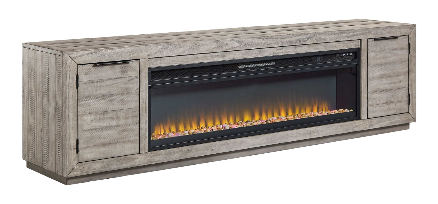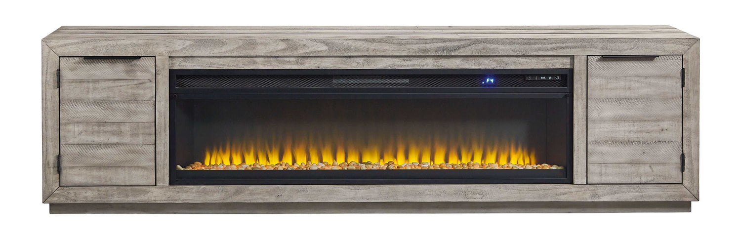 Naydell Gray 92" XL TV Stand w/ Fireplace Option