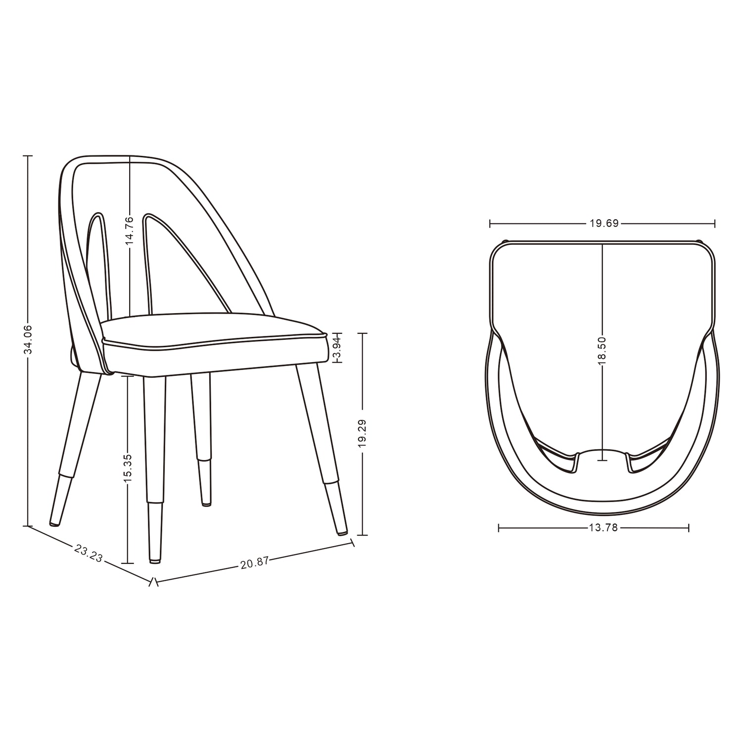 - Dining Chair Dimensions Measure: 20.87 in. Length, 34.06 in. Height, 23.23 in. Depth.