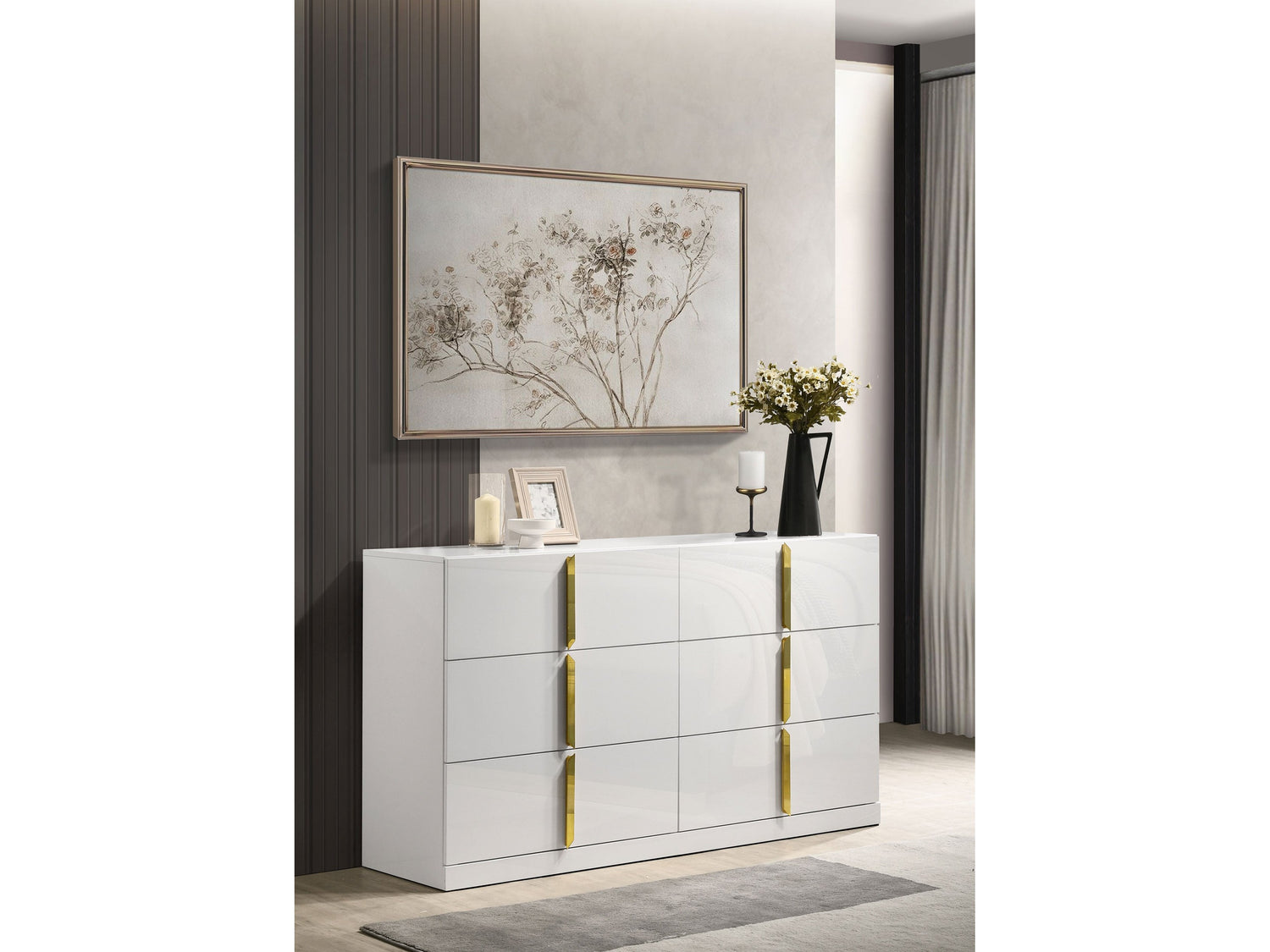 Ines White High Gloss 6-drawer Bedroom Dresser Cabinet