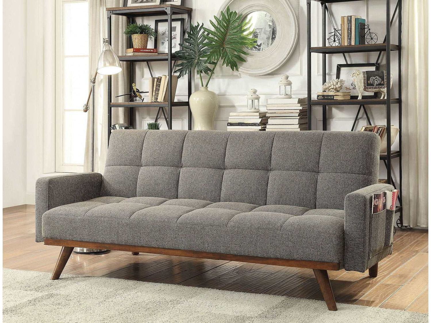 Futons don't always look like futons. This stylish piece has all the angular charm of a mid-century modern sofa with the functions of a relaxing futon. The straight lines of the tufted back and track arms make the angled legs stand out for that classic design aesthetic. Small pouches in the arm rest ensure you have a safe place for the remote between sleeping and sitting periods. This lovely little piece can be the perfect addition to a lounge space or bedroom, without sacrificing any sense of style.