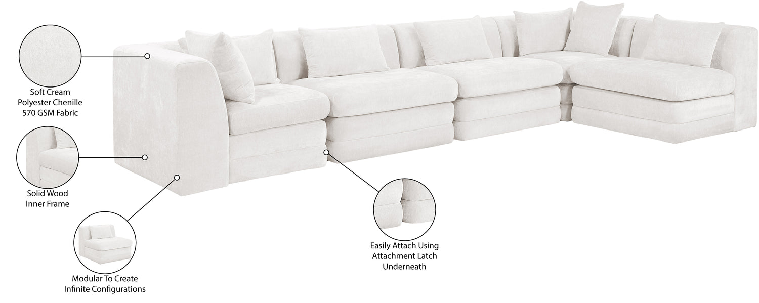 - Item Name: Newport Cream 152" Chenille Fabric Upholstered 5-Piece Modular Sectional
