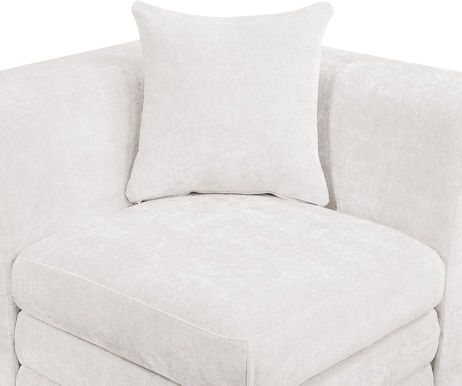 Plush cream chenille and a sprawling modular design make the Newport sectional a standout for cozy, contemporary living. Crafted with a solid wood inner frame and 570 GSM fabric, it's built for both durability and style. Configure and reconfigure the set to suit any space, effortlessly connecting each section with hidden latches underneath.