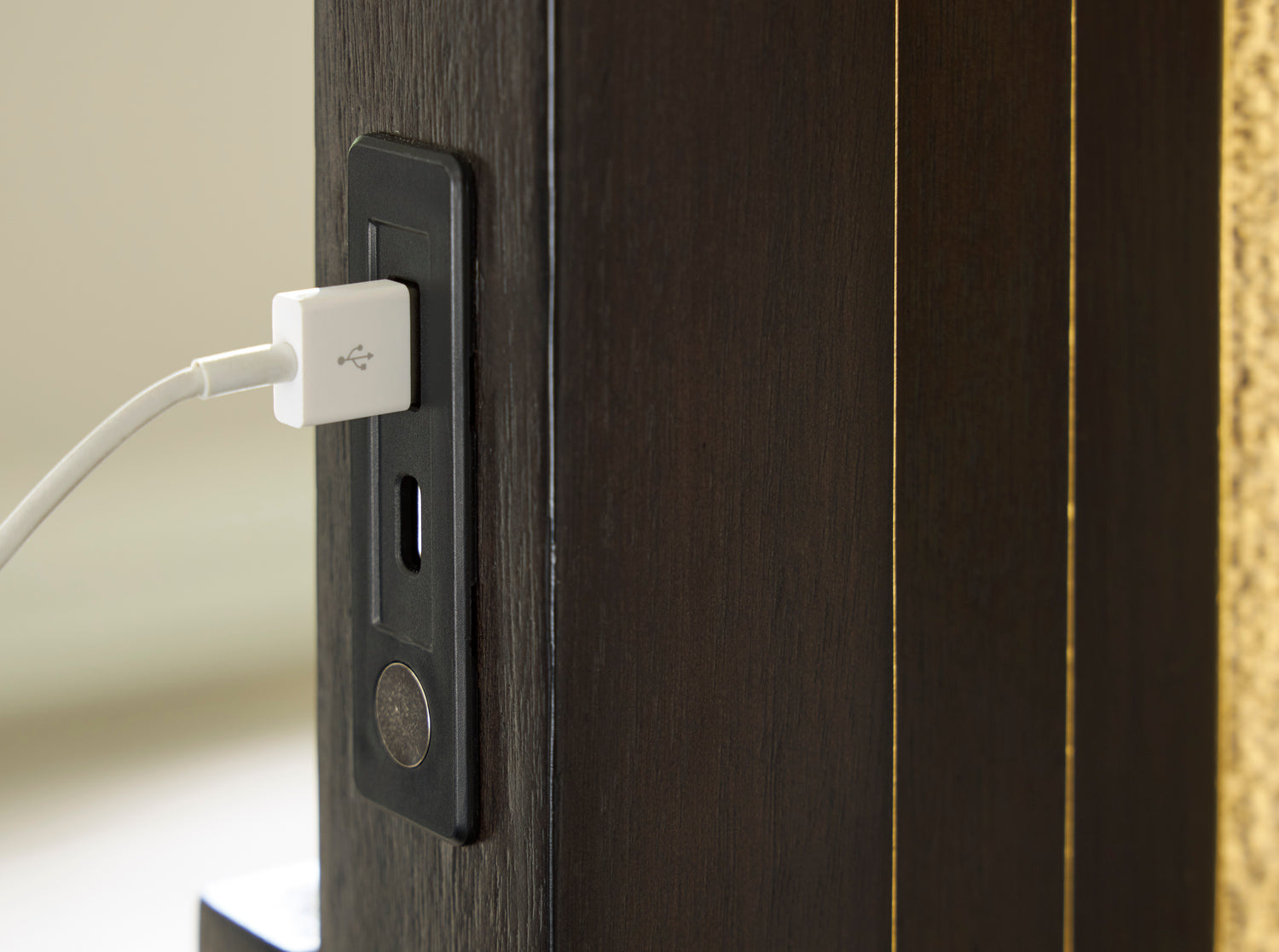 - Light switch is located on each side of headboard and includes dual USB charging port (USB-A and USB-C)
