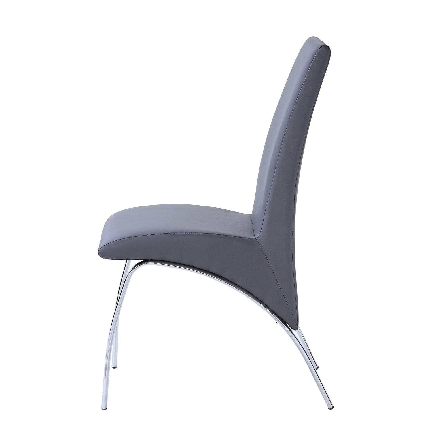 Add a modern touch to your dining room with the Noland dining room collection. With clear tempered glass legs serving as the table's base, this beautiful rectangular dining room table doubles as a piece of art for your dining room. The table stunning high gloss finished top and modern glass legs will keep your room feeling open and refined. This sophisticated dining room table has unique armless chairs with curved chrome legs and fully padded seat and backrest in faux leather upholstery.