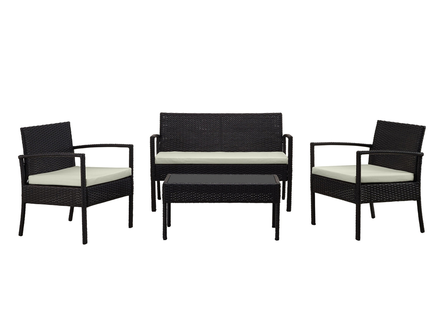 - Modern 4-Piece Outdoor Conversation Patio Set with 2 Armchairs, 1 Loveseat, and 1 Coffee Table.
