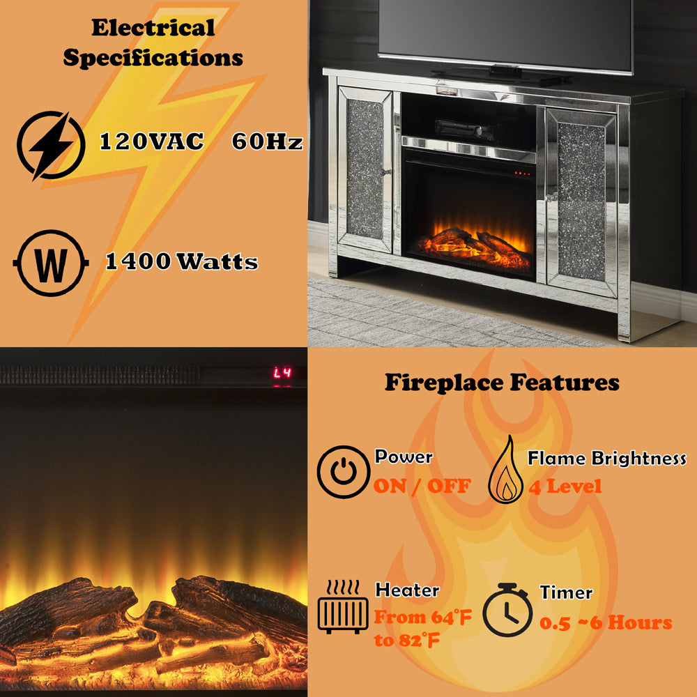 - Material: Mirror, Glass, Faux Crystals, Fireplace, Composite Wood