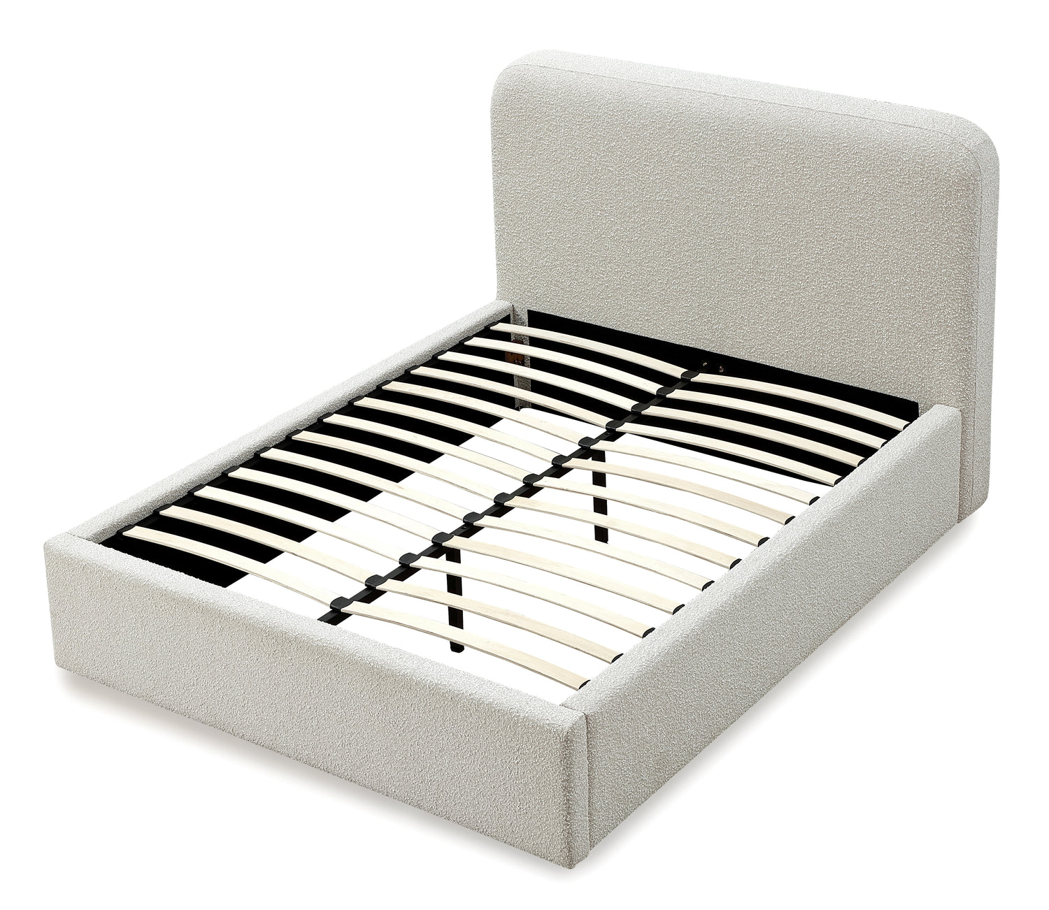 - Item Name: Off-White Upholstered Platform Bed in Ricotta Boucle