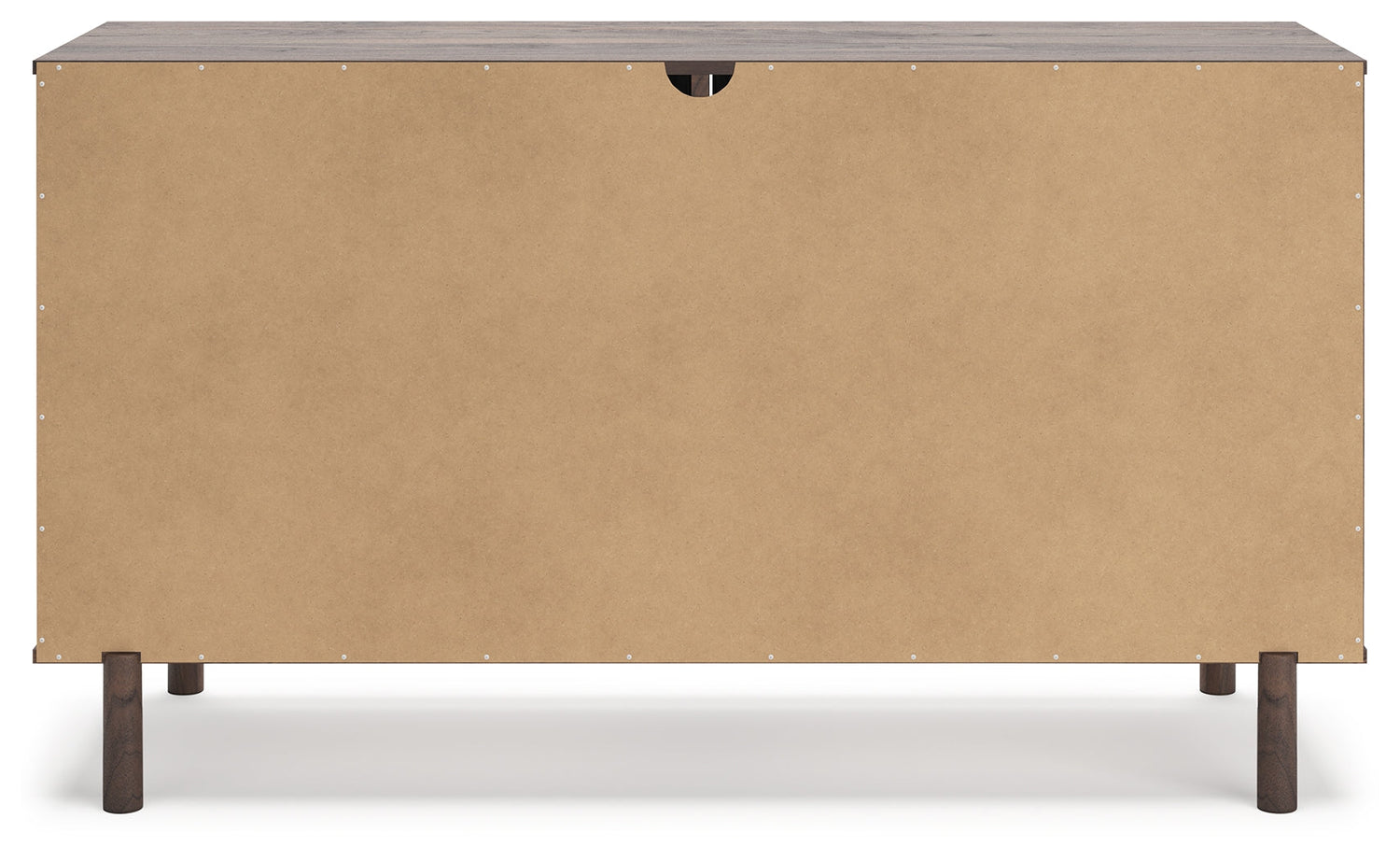 At the intersection of industrial cool and chic sophistication, you’ll find this dresser. With a rich brown finish over replicated walnut wood grain, paired with burnished goldtone handles, it offers an authentic touch that plays well any way you style it. Simple and elegant in its design, this piece keeps your home decor grounded while elevating your modern style.