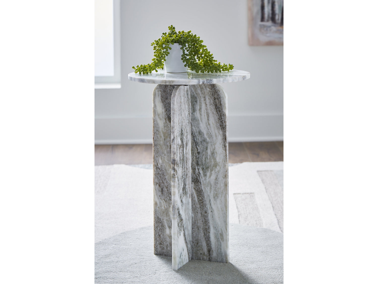 Style to aspire to. This accent table appeals to your eye for artisanal design at an affordable price. The all-marble construction makes it a sculptural addition to your curated space. Whether this table is standing alone or with decor on its smooth top, the beauty of natural stone makes a stunning impression.