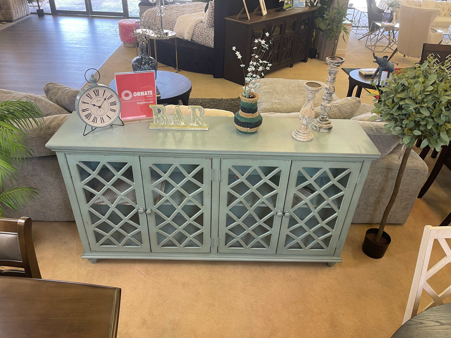 Mirimyn Antique Teal Accent Cabinet w/ 4 Door (Online Special Price)