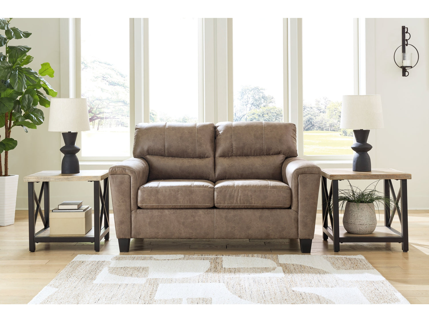 This decidedly modern loveseat proves less is more, bringing simply inviting style to your living room. Take the guesswork out of decorating—its warm faux leather has a universal appeal, pairing with casual and contemporary aesthetics alike. All you need to do is sit back, relax and enjoy the comforts of home.