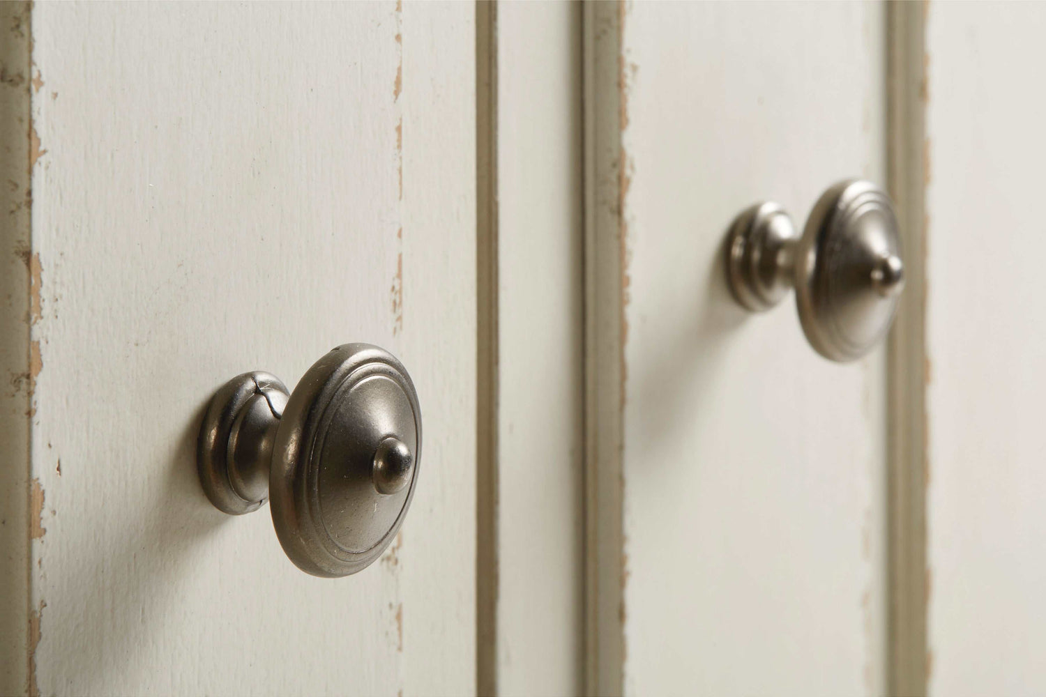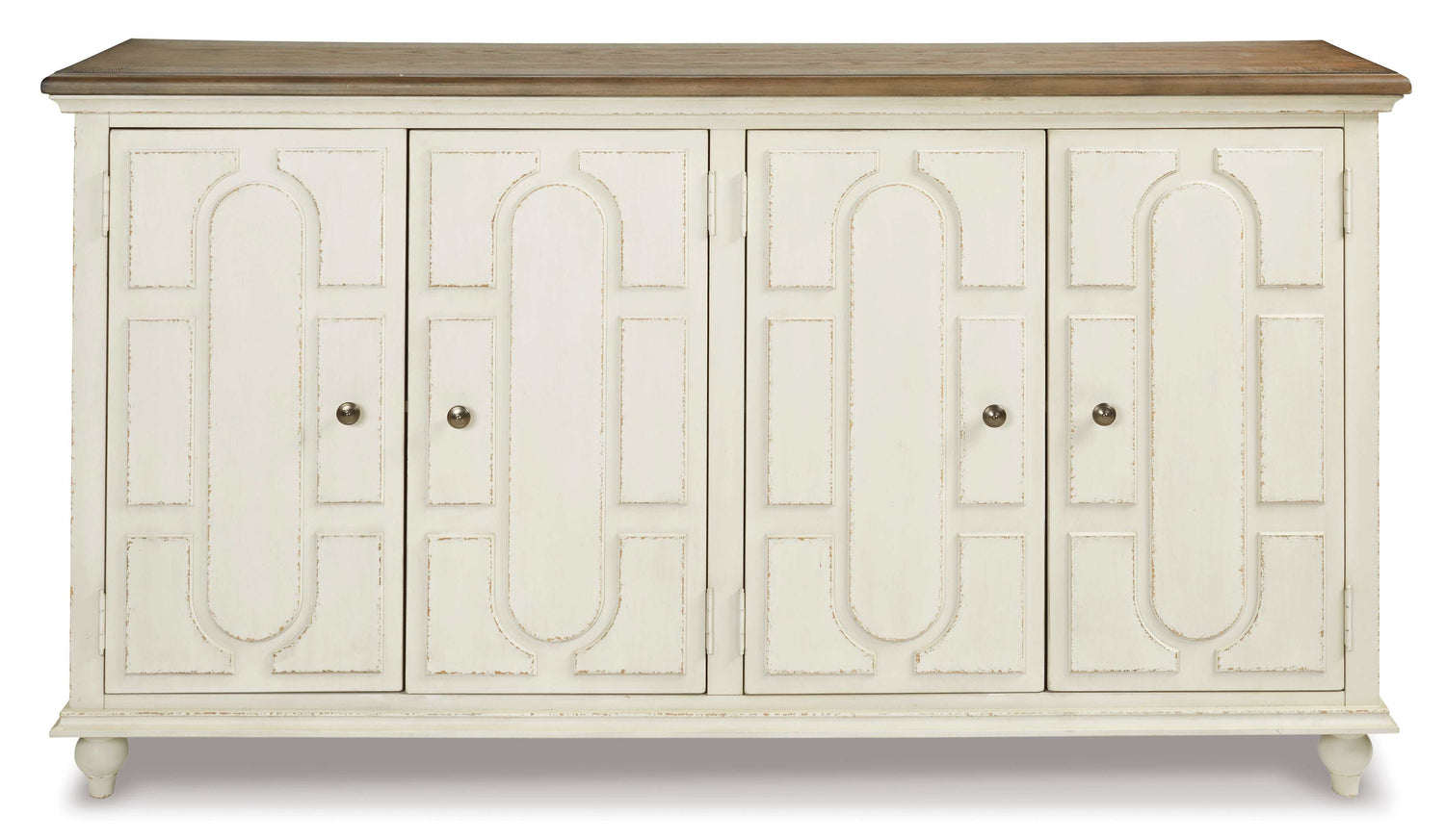 Whether your style is cottage chic, boho-inspired or uniquely eclectic, this accent cabinet is sure to look right at home. Standout elements include raised panel door fronts that are a work of art. Wonderfully timeworn in antique white, this 4-door cabinet is topped with a warm brown finish for two-tone interest. Two adjustable shelves add to its practicality.