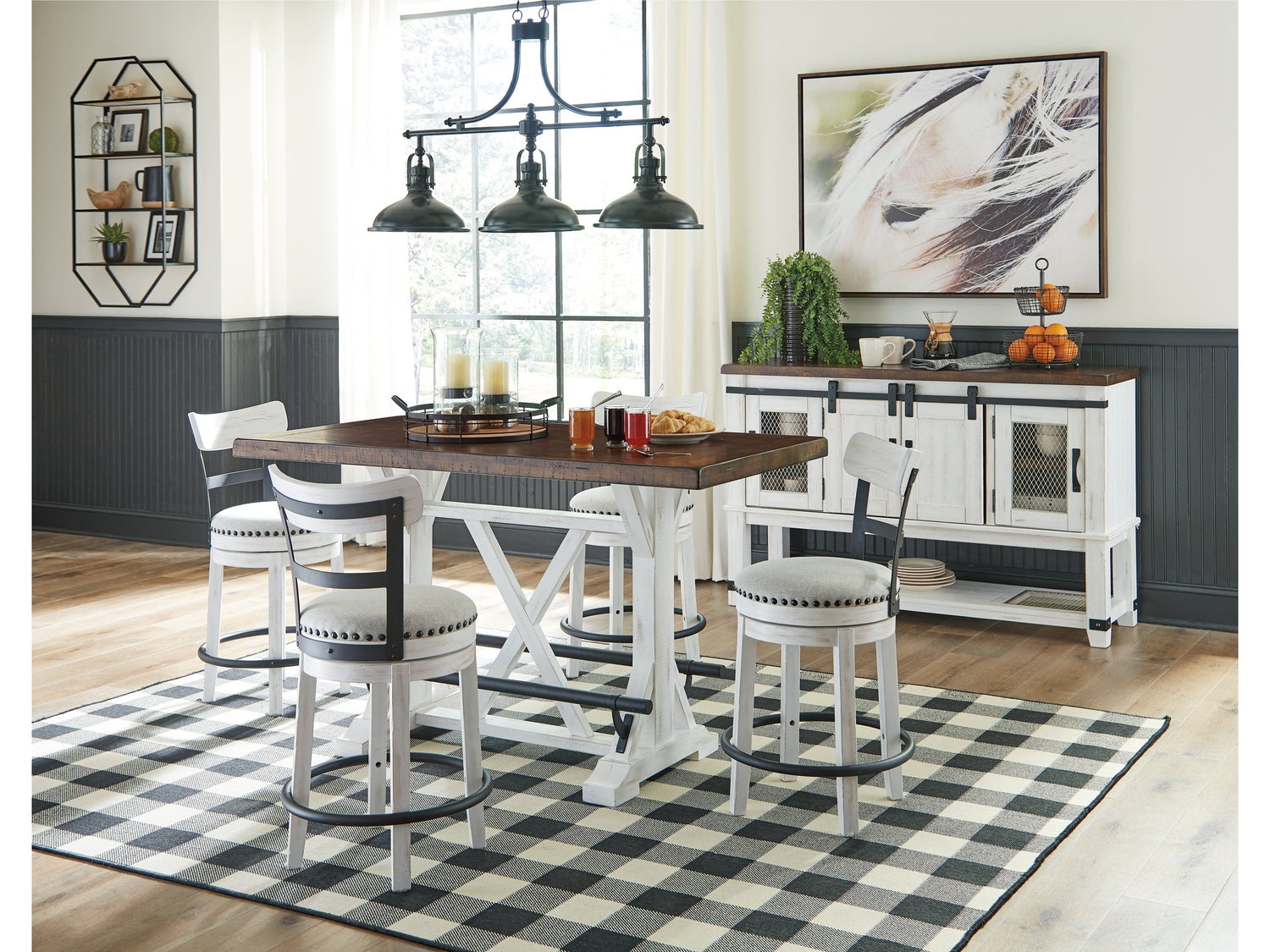 - Item Name: Valebeck Counter Height Dining Table, 4 Barstools and Server