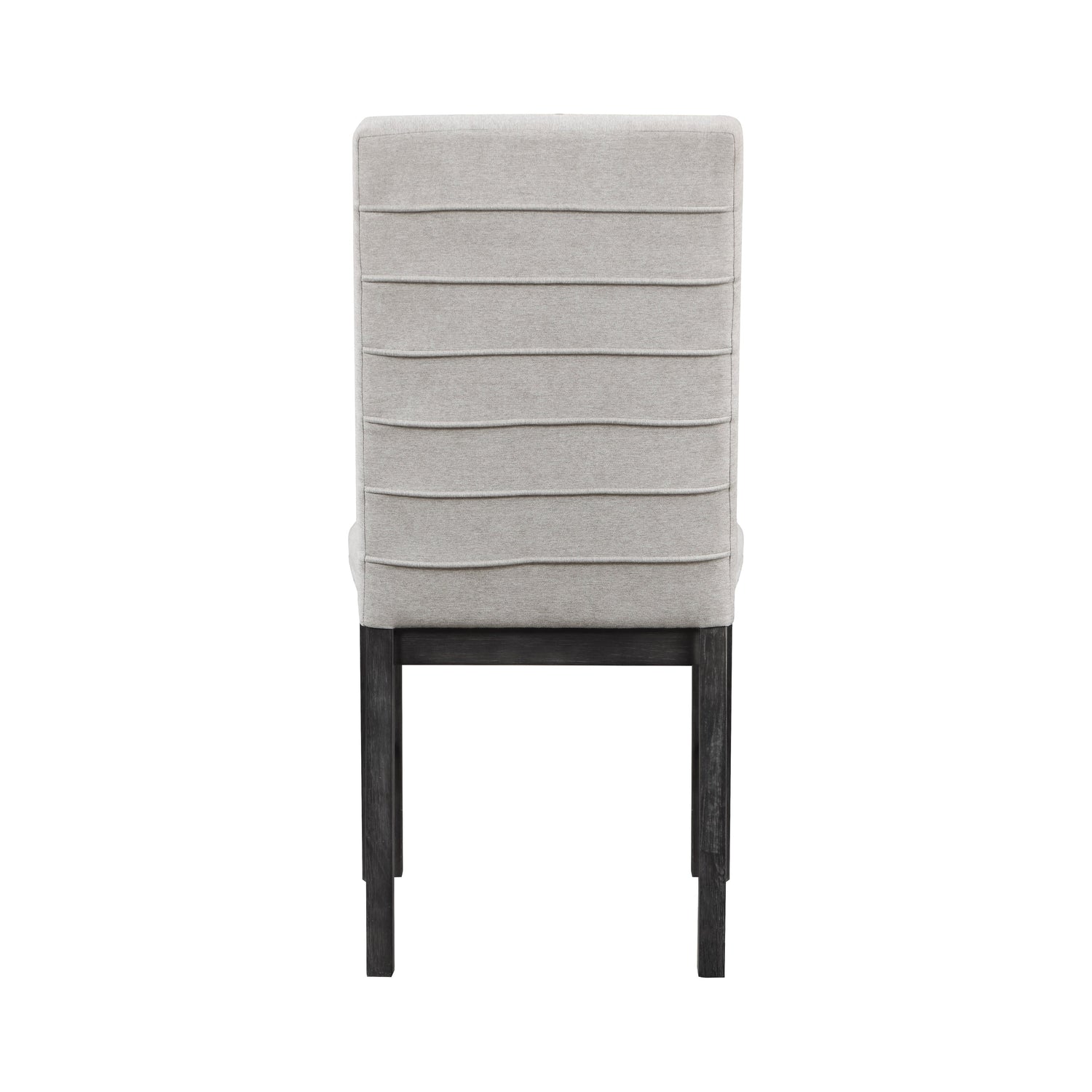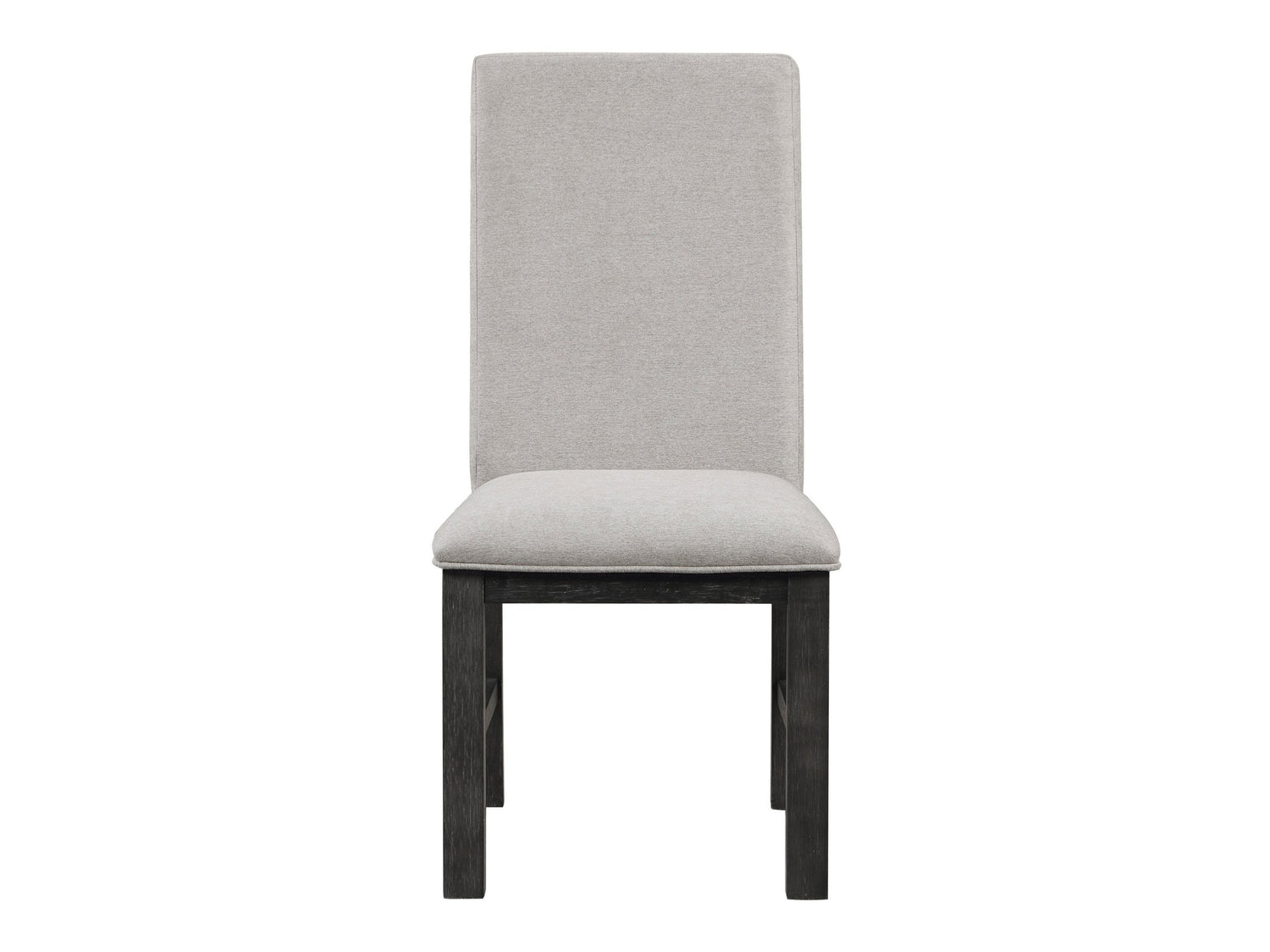 The transitional framing of the Orem Collection will provide a perfect mealtime platform for your casual dining room. The antique black finish of the collection’s oak veneer creates a versatile decorative accent to your space. Gray fabric upholstery covers the seats and backs of the wood leg-supported side chairs.