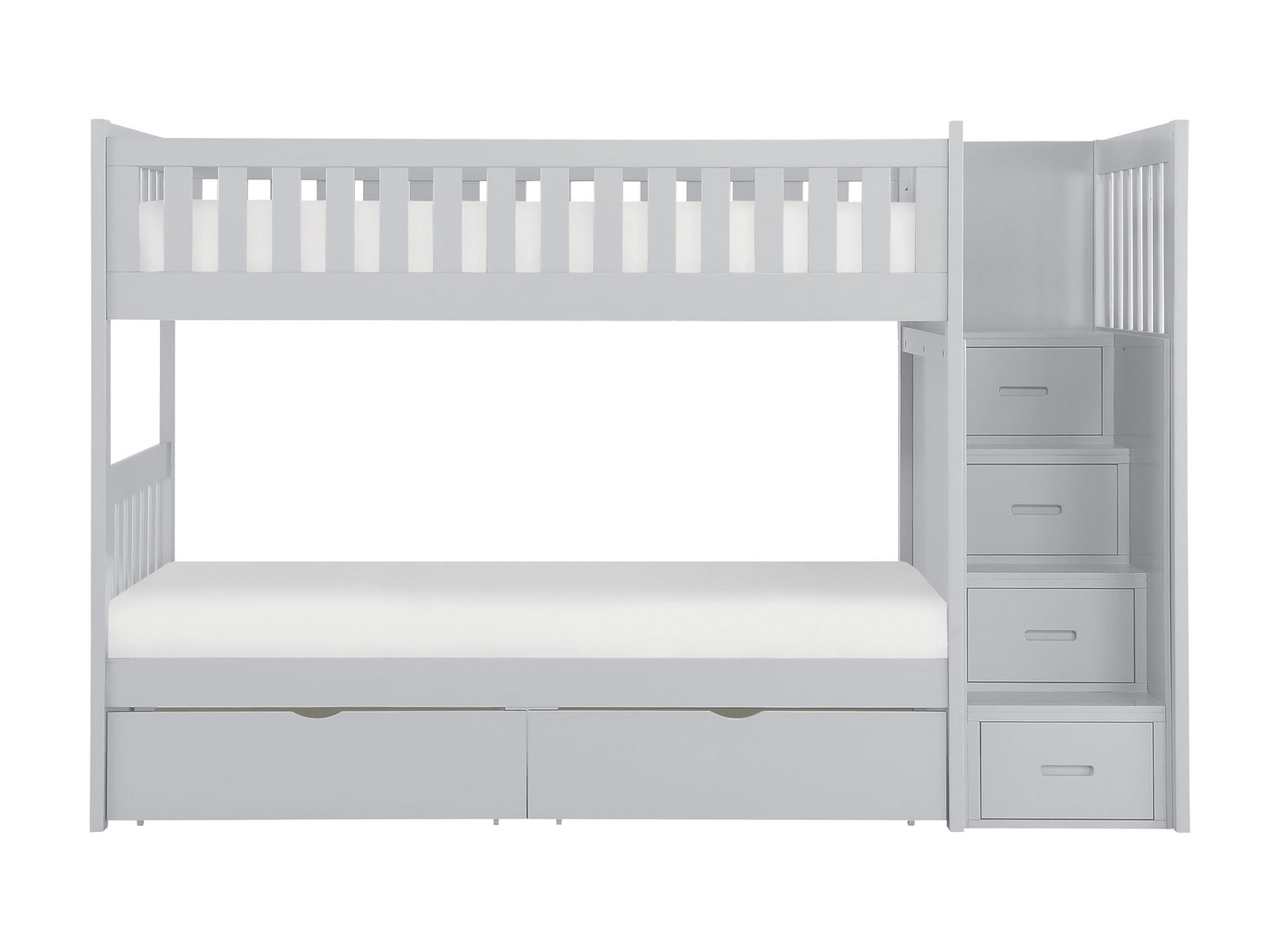 - Item Name: Orion Gray Twin/Twin Step Bunk Bed With Storage Boxes